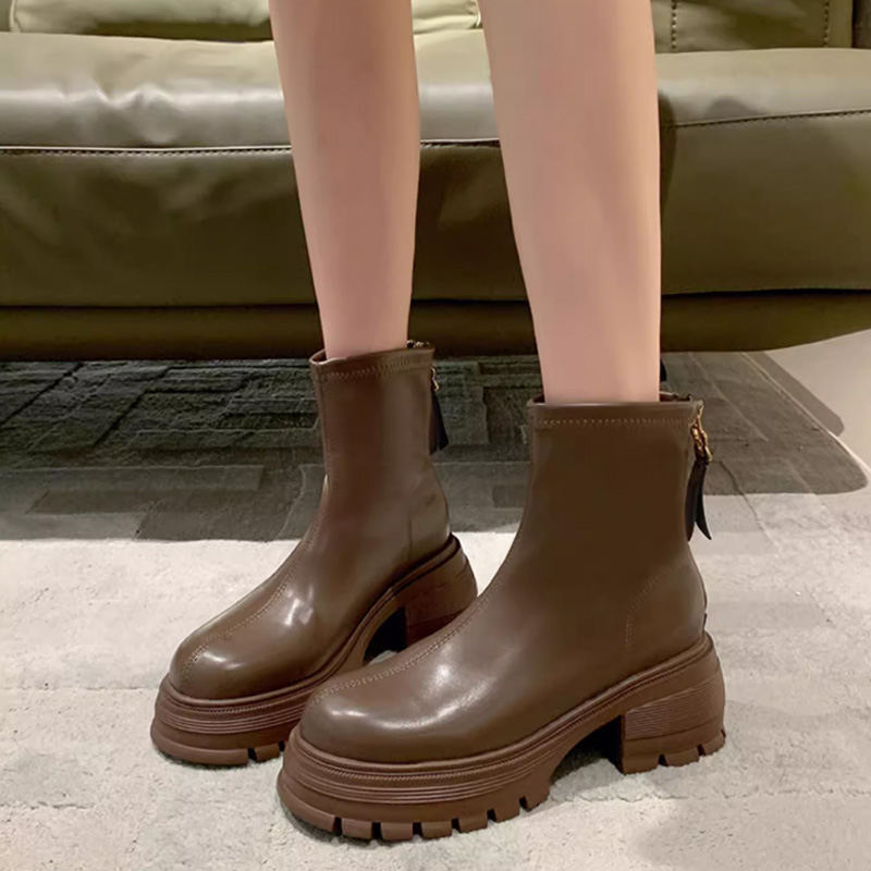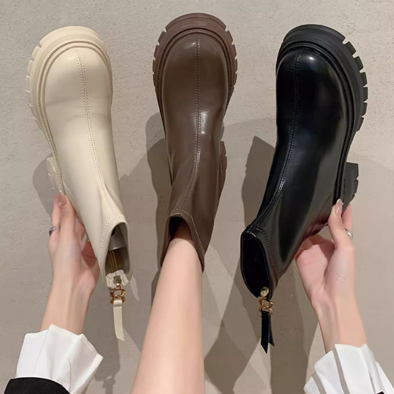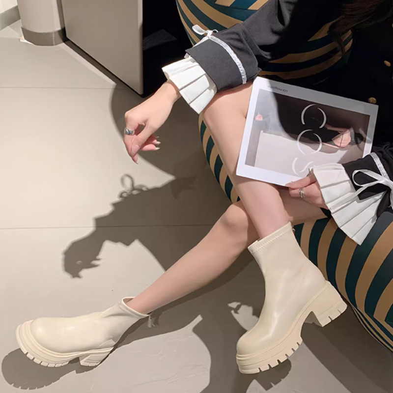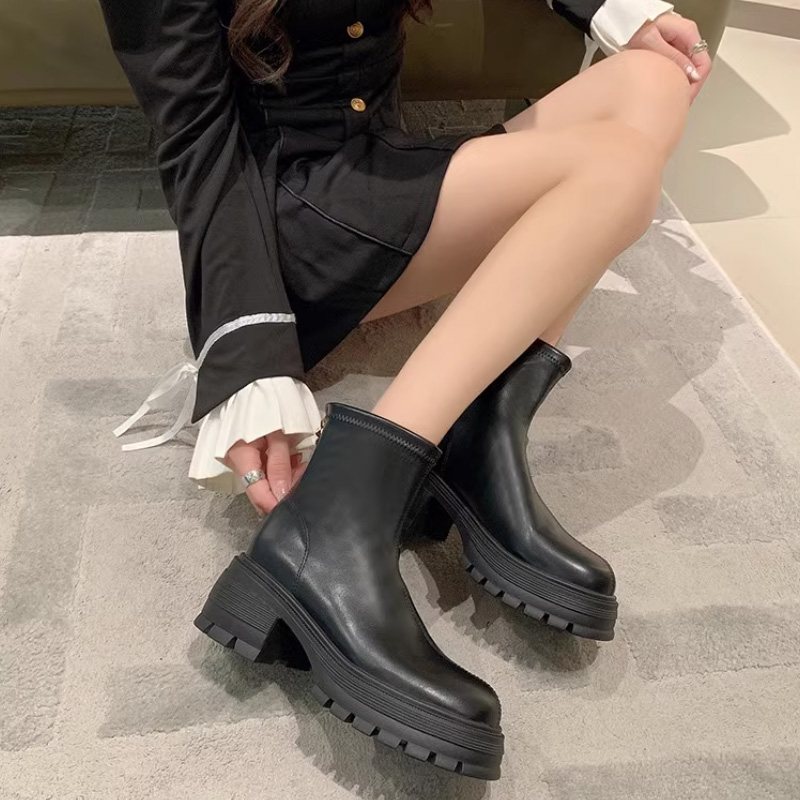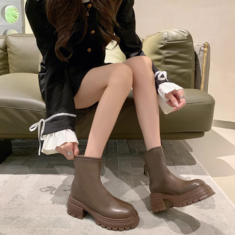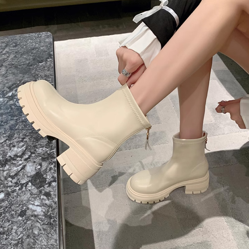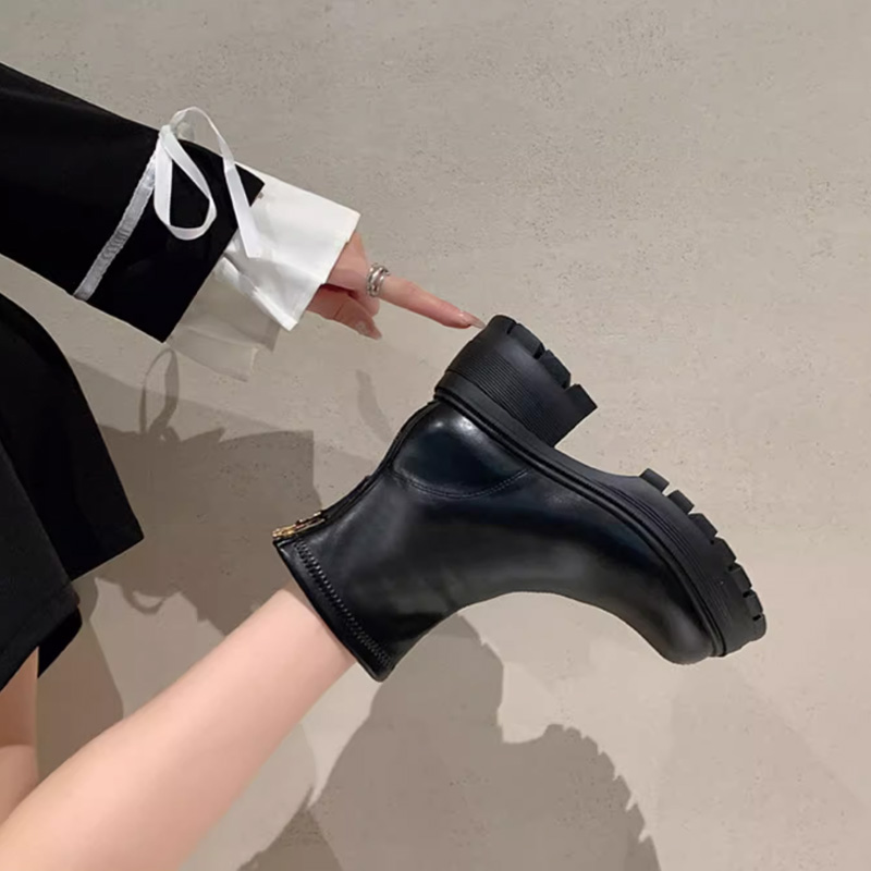 ブーツ ショートブーツ 厚底 レディース 靴 ショート 厚底ブーツ タンクソール 歩きやすい 疲れない ミドル ジップアップ おしゃれ トラックソール ボリュームソール シンプル 滑り止め 小さいサ