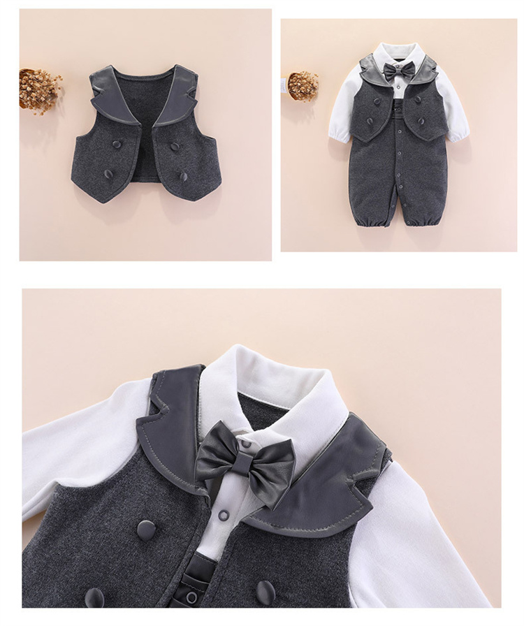 ツーウェイオール 退院着 カバーオール 新生児 2点セット 蝶ネクタイ付き ロンパース ベビー 男の子 スーツ フォーマル【送料無料】