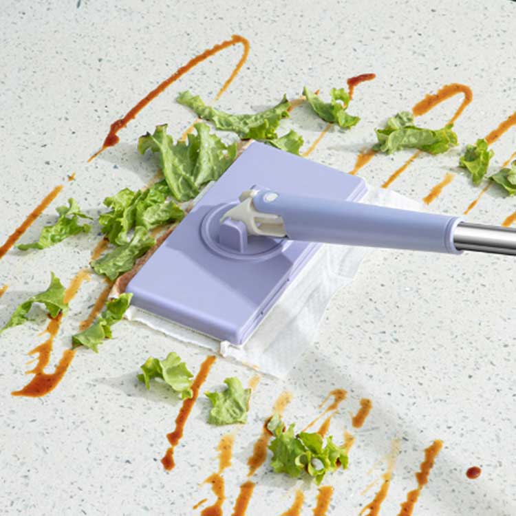 【フェイスタオル対応ハンズフリーミニモップ】押すだけでフェイスタオルをモップヘッドに簡単に固定でき、手動で調整したり汚れた布に触れたりする必要がなくなります。
