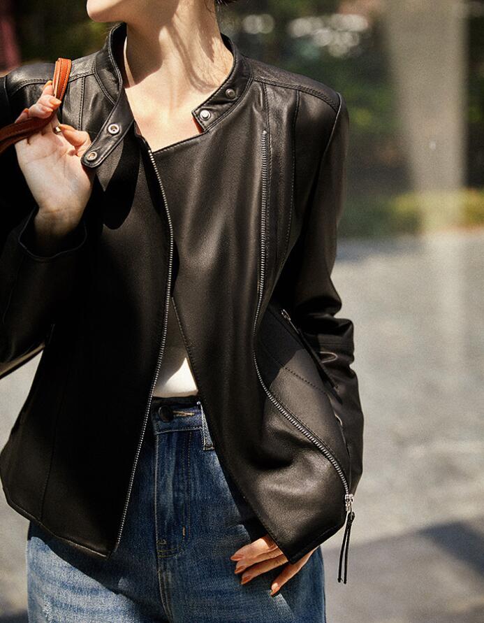 本革 羊革 レザージャケット 革ジャン ダブルライダース ショート丈 短ジャンパーブルゾンスレンダーライン細身レディースファッションコートジャケット ライダースジャケットGジャケット