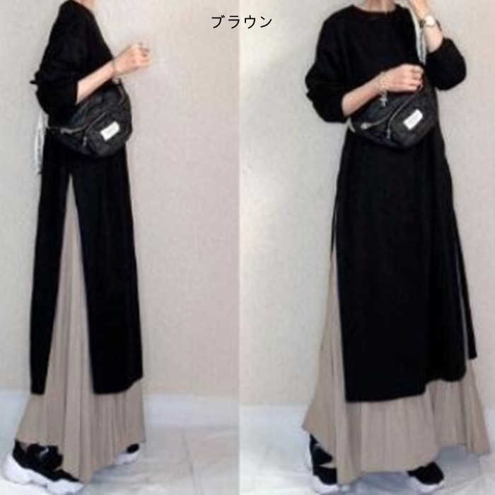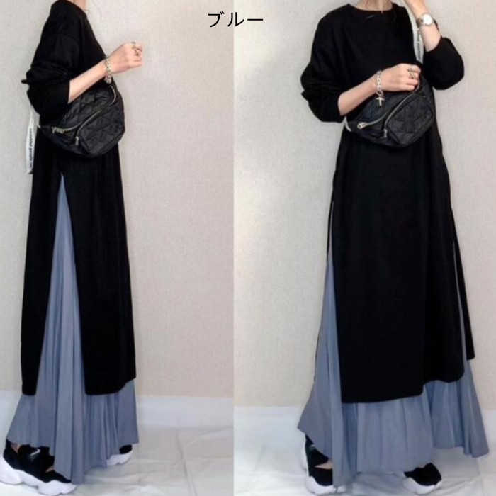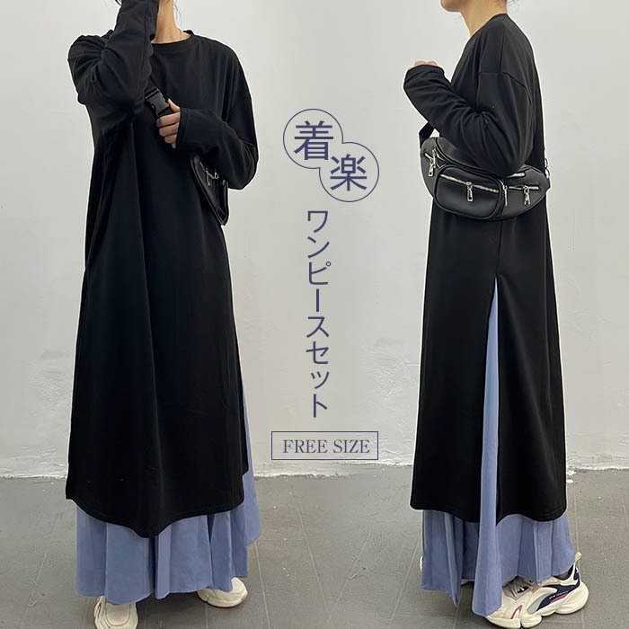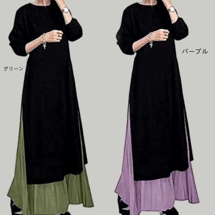 キーワード ワンピース セットアップ レディース 春 秋 長袖 ロング ワンピース スカート セットアップ マキシ丈 ワンピ 秋 冬 通勤着 可愛い 秋服 ゆったり 体型カバー 2点セット スリット バイカラー 20代 30代 40代 50代 大きいサイズ 送料無料