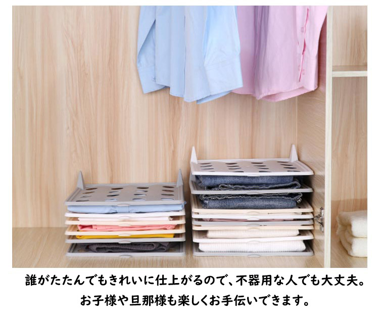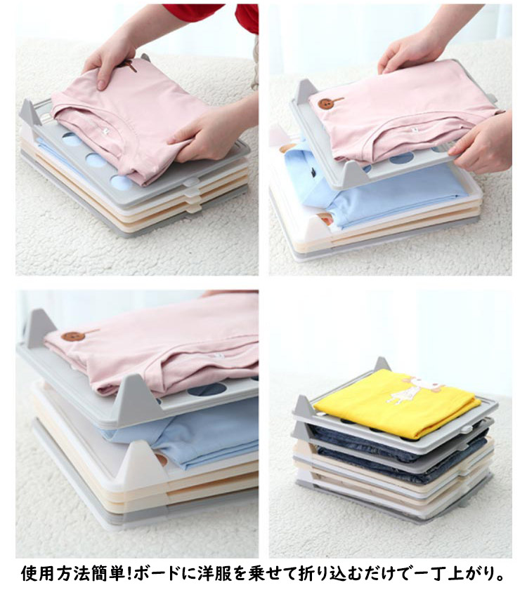 使用方法簡単!ボードに洋服を乗せて折り込むだけで一丁上がり。誰がたたんでもきれいに仕上がるので、不器用な人でも大丈夫。お子様や旦那様も楽しくお手伝いできます。