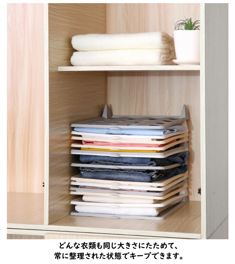 どんな衣類も同じ大きさにたためて、常に整理された状態でキープできます。