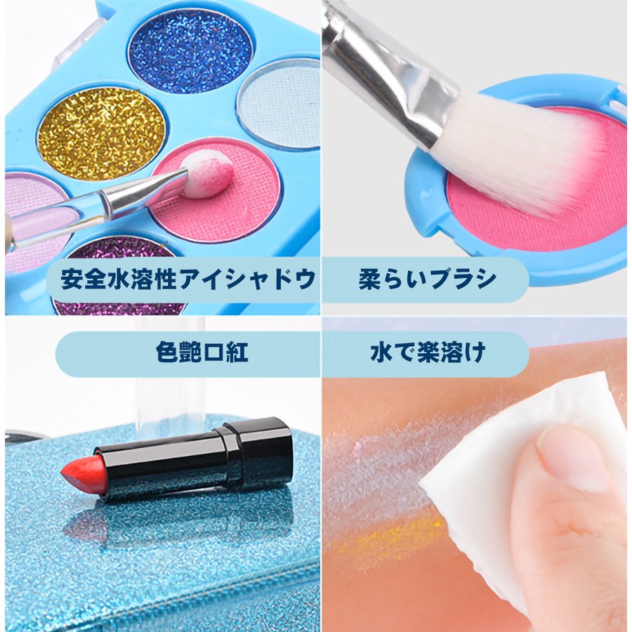 検索ワード:子供用 メイクセット キッズ コスメセット ごっこ遊び キッズコスメセット ままごと 化粧品おもちゃ メイクアップセット 化粧品おもちゃセット 水溶性化粧品 安全 無毒 洗える 子ども用 化粧道具 お化粧セット