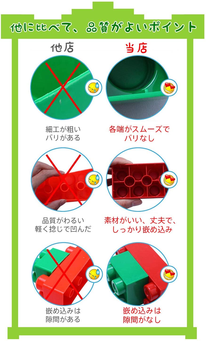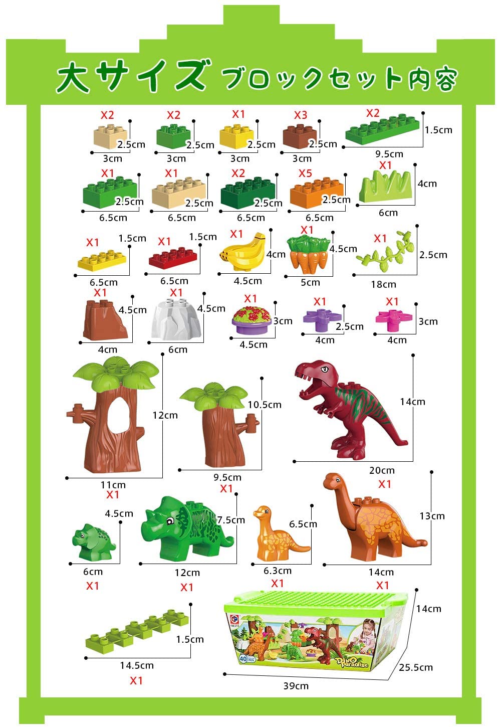 商品情報商品紹介 【想像力を刺激する知育玩具】40ピースのブロックセットで無限の可能性が広がります。大きな樹や恐竜、カラフルなブロックなど、1メートルを超える大作も自由自在に作れます!想像力や空間認識能力を楽しみながら育みましょう。