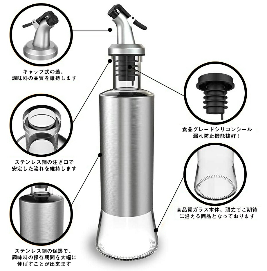 漏れ防止 オイルボトル 350ml ガラス オイルポット コンテナ 調味料容器 耐熱ガラスオイラー 液だれしない 醤油ボトル ビネガーボトル 醤油さし キッチン用 調味料ボトル