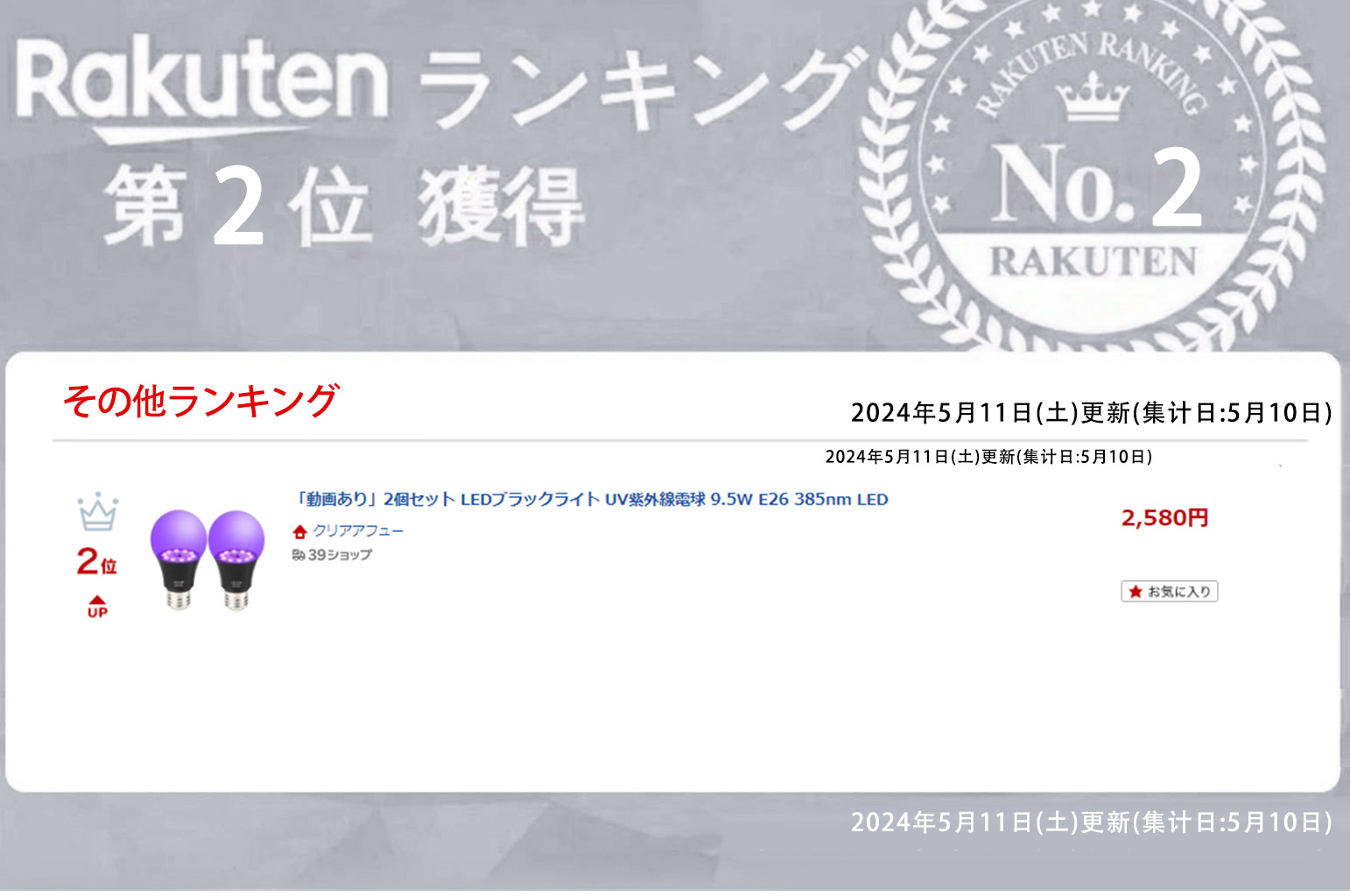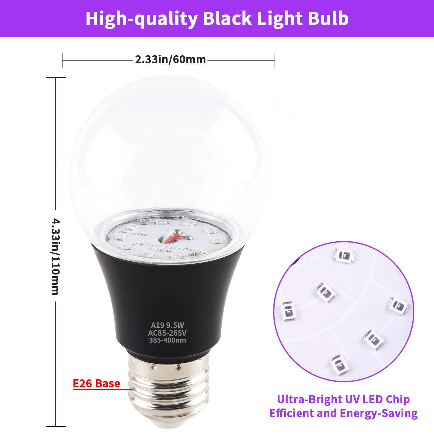 2個セット LEDブラックライト UV紫外線電球 9.5W E26 385nm LEDインテリア 寝具 収納 ライト 照明器具 電球 その他