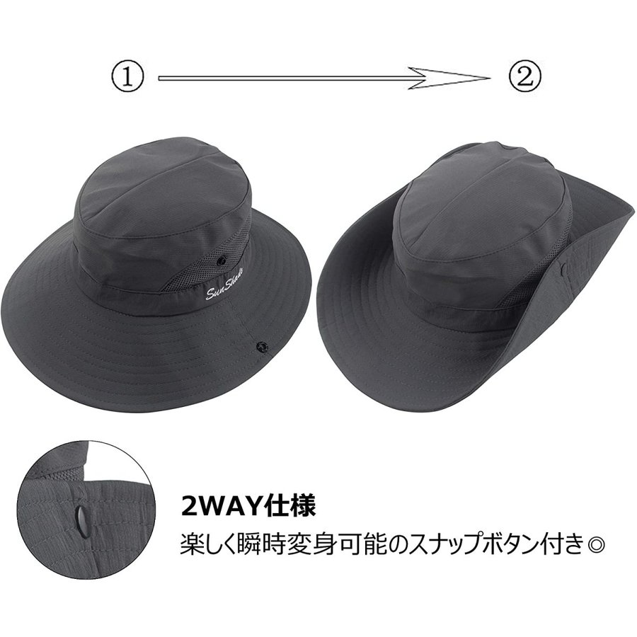 【収納便利な2way仕様】コンパクトに折り畳めるのでお気軽に持ち運べ、両サイドに付いたスナップボタンを留めればテンガロンハットにもなる2way仕様スタイル。専用あごひも付属しており、ひっかけるだけで完成、着脱も簡単です!