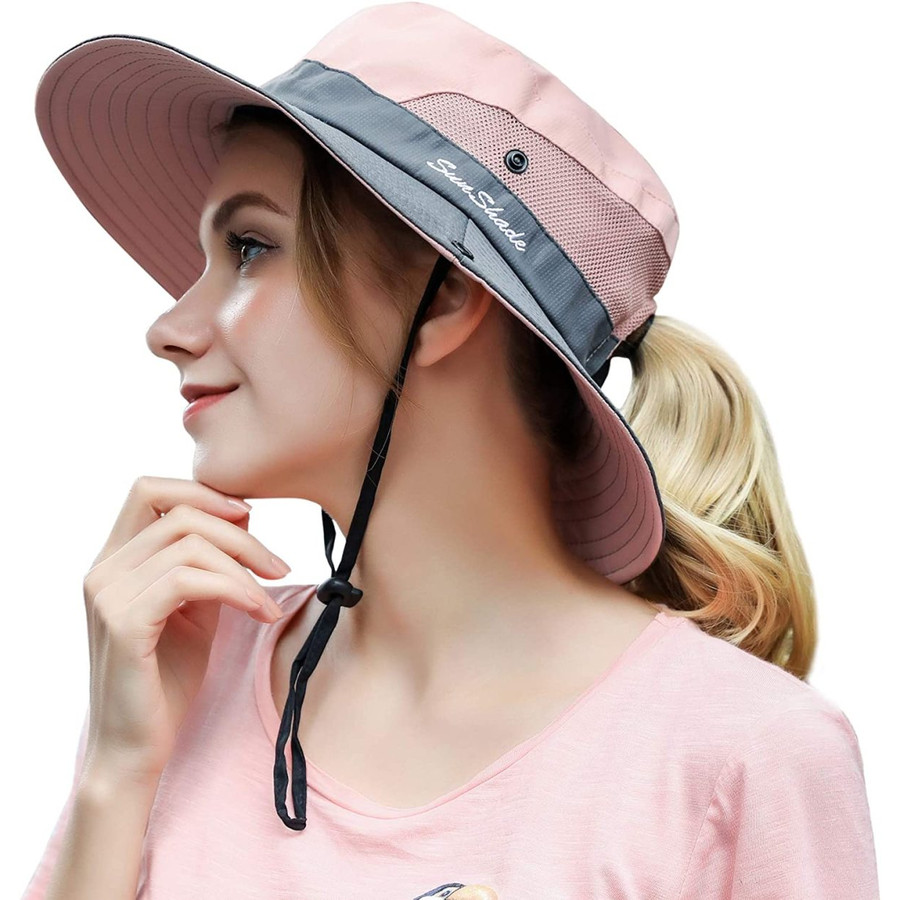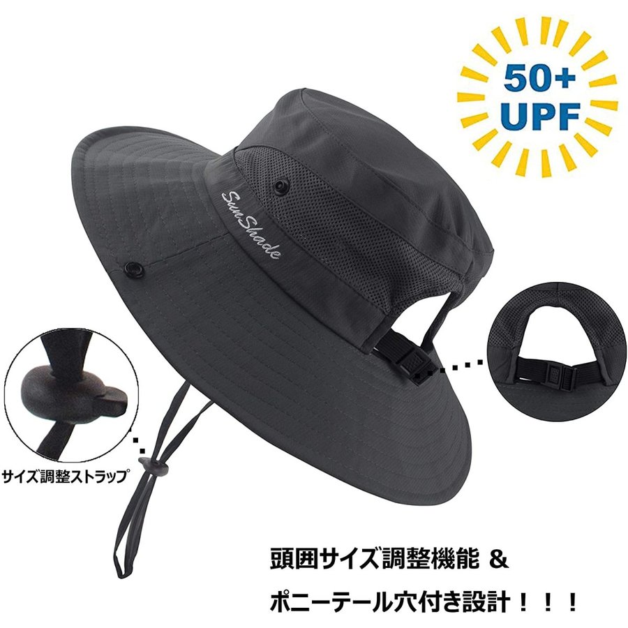 日よけ帽子 レディースアウトドア UVカット通気性 ポニーテール アウトドア帽子 サファリハット 作業用 自転車用帽子 つば広 レディースキャップ バケットハット