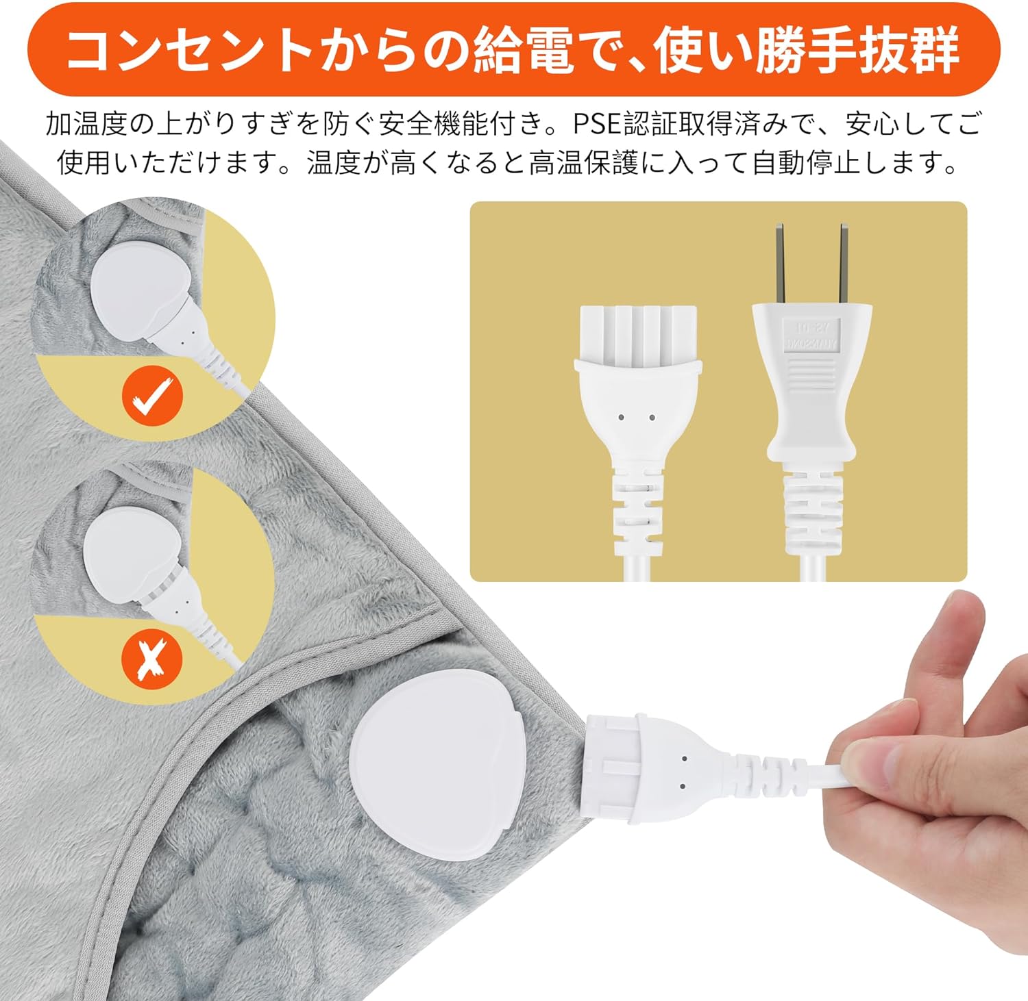 スイッチは簡単に温度調節が可能なシンプル仕様です。タイマーをセットして過熱保護もでき、過熱・電圧異常の場合、すぐ自動的に電源を切ります。ご安全に使用いただけます。