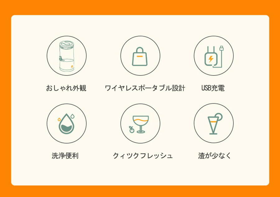 コンパクトで携帯便利 ホーム、ピクニックやキャンプ、オフィス、などありとあらゆるシチュエーションで、気分次第でフレッシュジュースをお楽しみ頂けます!