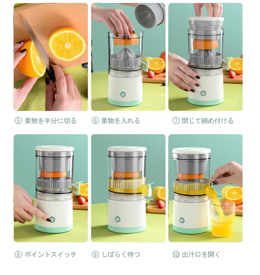 新型多機能電動ジュース搾り機 携帯果物ジュース搾り機 ジューススラグ分離ジュース機 電動果物ジュース搾り機 シトラスジューサー 生搾り グレープフルーツ ほんしぼり ライム レモンしぼり器 USB出力 アウトドア 旅行 出張 オフィス 400mL 低温調理 業務用 家庭用