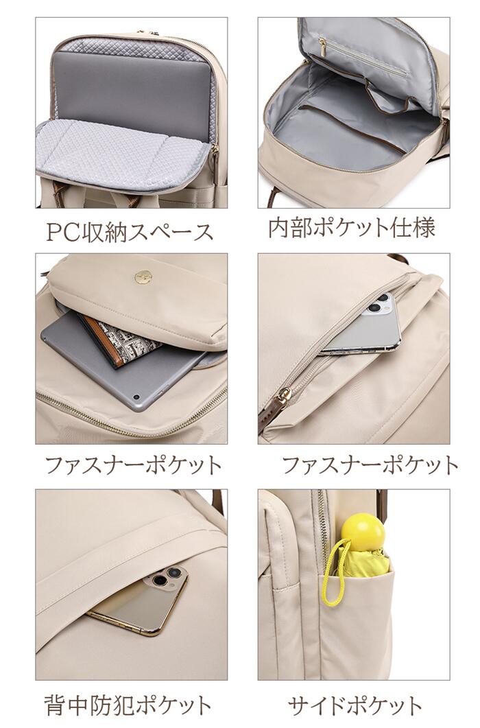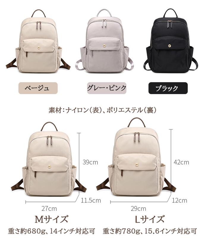 洗練されたデザイン 撥水加工 リュック レディース リュックサック 中学生 高校生 パソコンバッグ pcリュック Macbook 13.3インチ 14インチ 15.6インチ ブラック ピンクベージュ