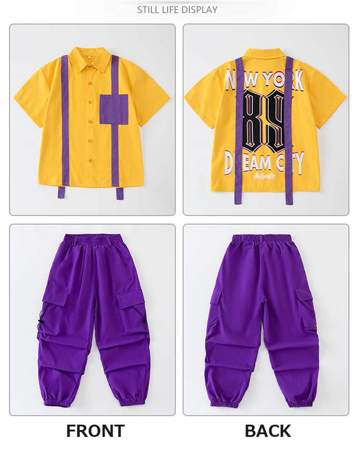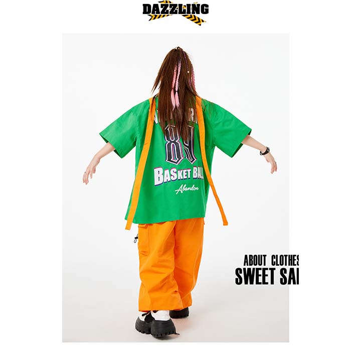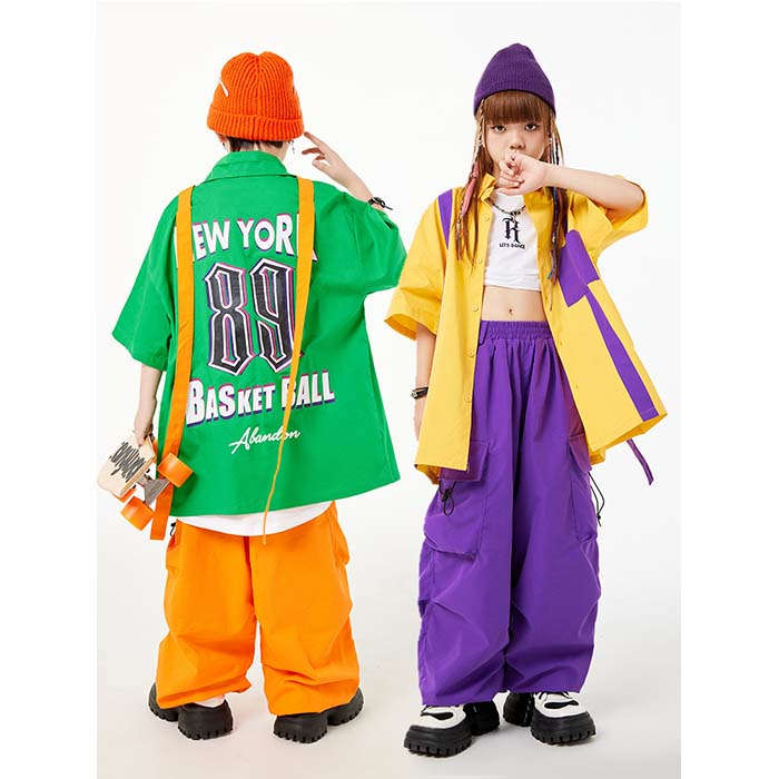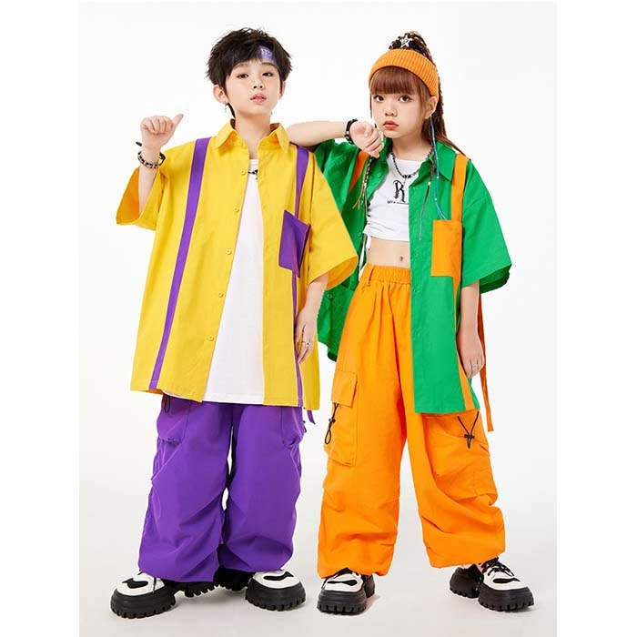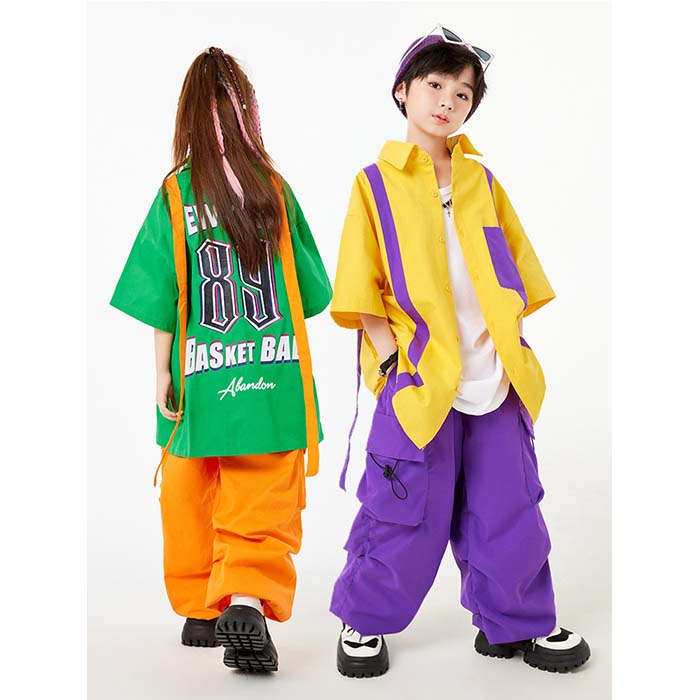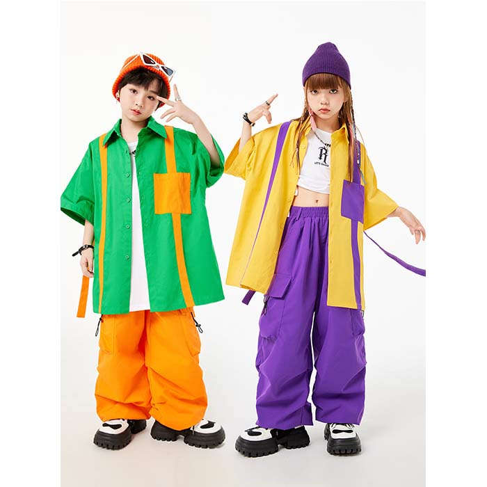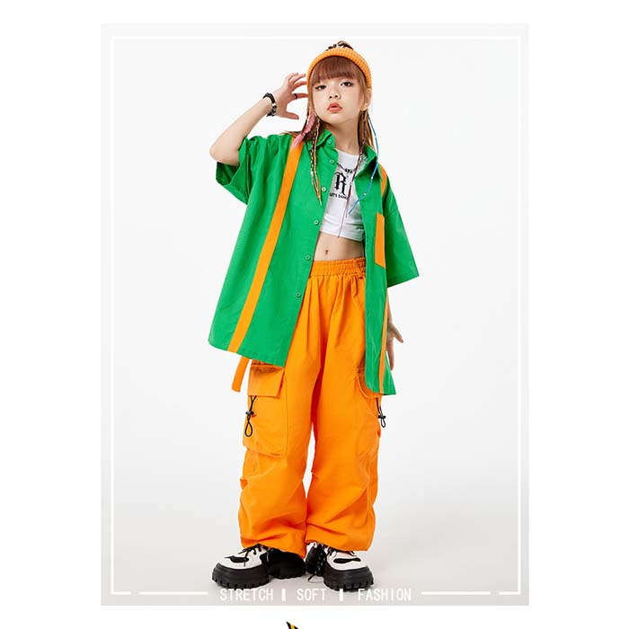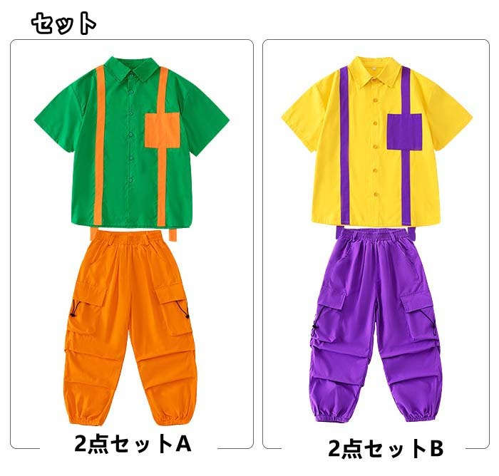 ダンスウェア 女の子 シャツ 半袖 カーゴパンツ ロングパンツ 長ズボン ダンス衣装 男の子 子供服 セットアップ ヒップホップ ジャズダンス ステージ衣装 ゆったり HIPHOP K-POP JAZ