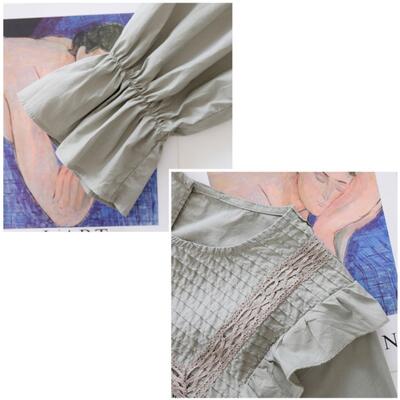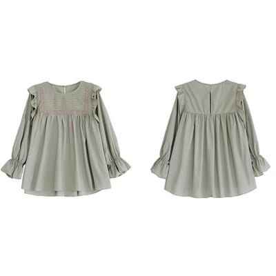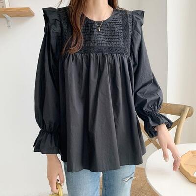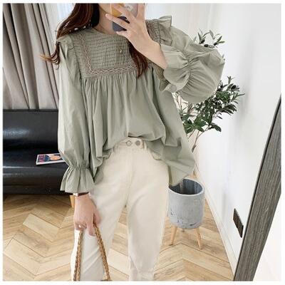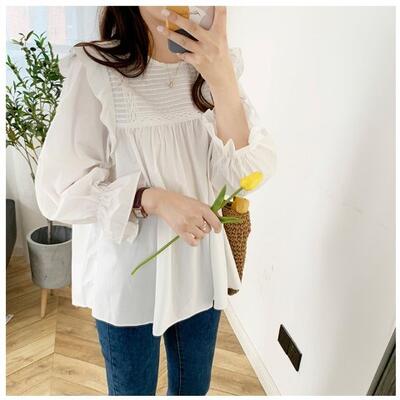 トップス レディース きれいめ カジュアル おしゃれ 薄手 カットソー 袖あり 長袖 綿 ブラウス シャツ コットン ティアード 上品 韓国 コーデ ホワイト 白 グリーン ブラック 黒 春 夏 秋