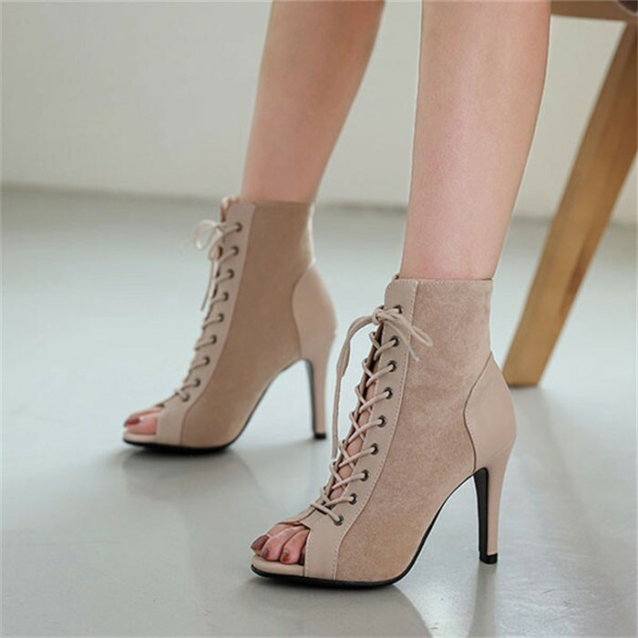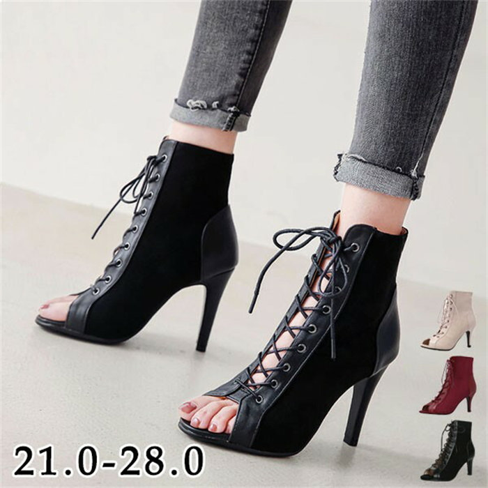 サマーブーツ サンダル オープントゥ ピンヒール 編み上げ 9cm 7cm レディース 楽ちん ショートブーツ シューズ ブーツ グラディエーター スエード 靴 ハイヒール 小さいサイズ 大きいサイズ ブーツサンダル