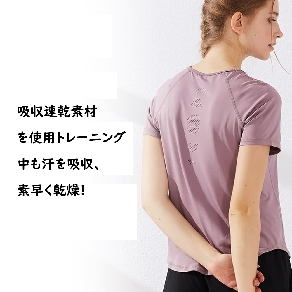トップス Tシャツ 速乾 吸汗 半袖 伸縮 ヨガウェア 長袖 レディース おしゃれ かわいい 40 50 代 フィットネス ウェア ピラティスウェア ホットヨガウェア ランニングウェア フィットネスウェア