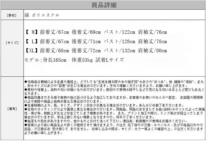 【XL】前着丈/68cm 後着丈/72cm バスト/132cm 肩袖丈/80cm
