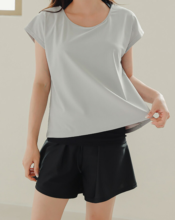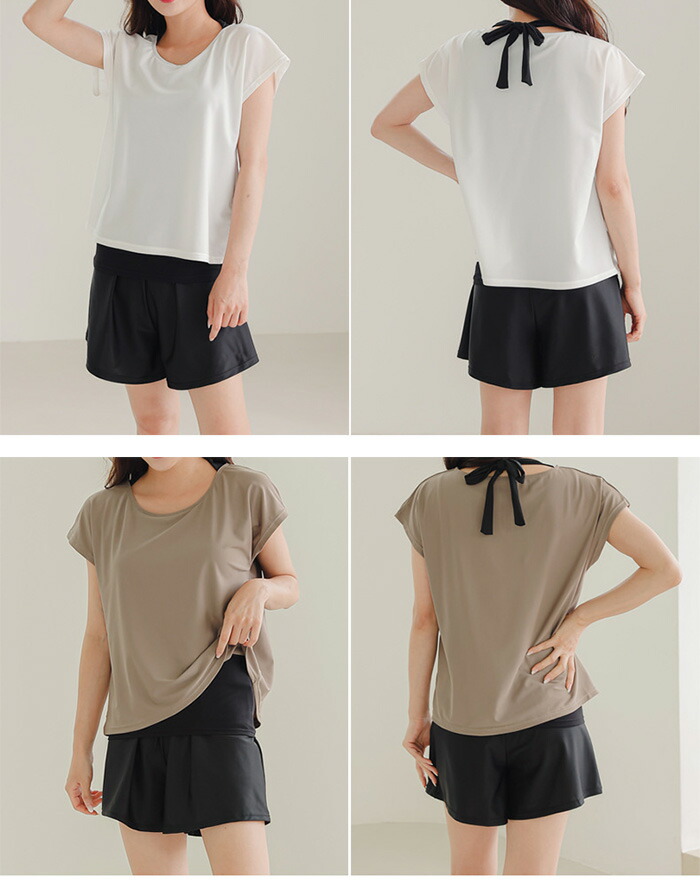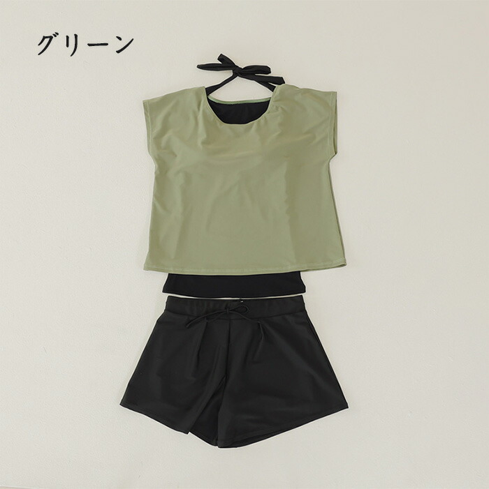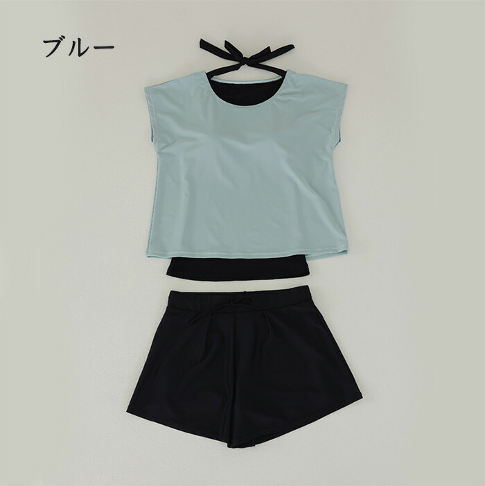 水着 レディース 体型カバー 上下セット ママ水着 セパレート Tシャツ パンツ 大きいサイズ 半袖ラッシュガードセット ショートパンツ 2点セット ノンワイヤー パッド付き バスト 盛れる ウエスト 女性 紫外線対策 日焼け防止 水陸両用