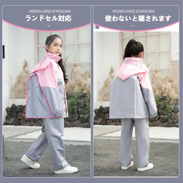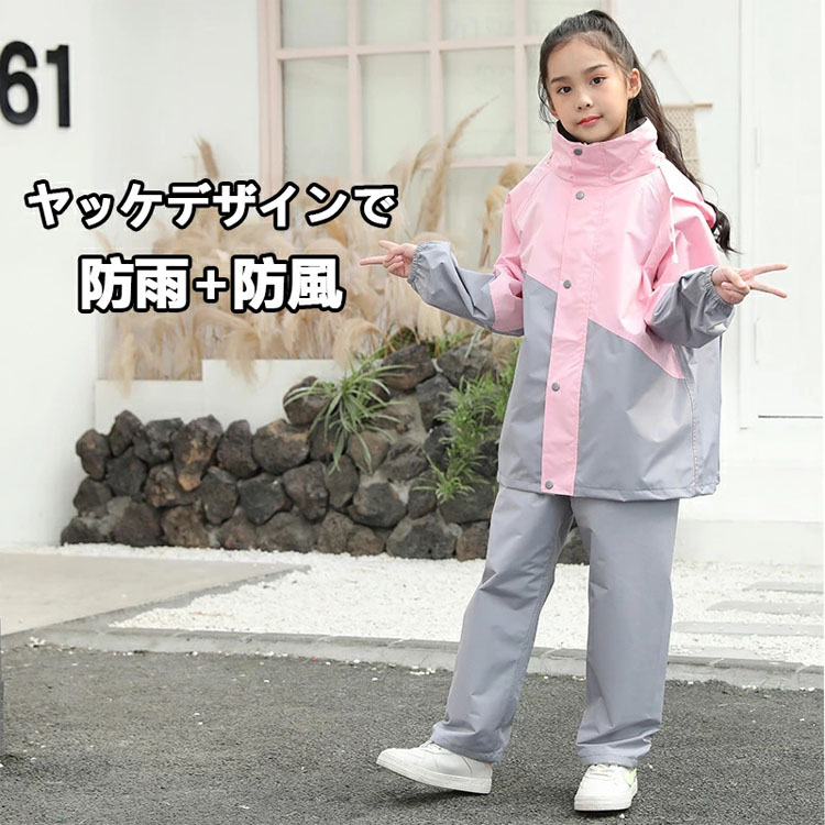 レインコート キッズ 上下 レインウェア セパレート 上下 子ども レインコート セパレート女の子 男の子 入学準備 通園通学 防水防風 収納バッグ付きランドセル対応