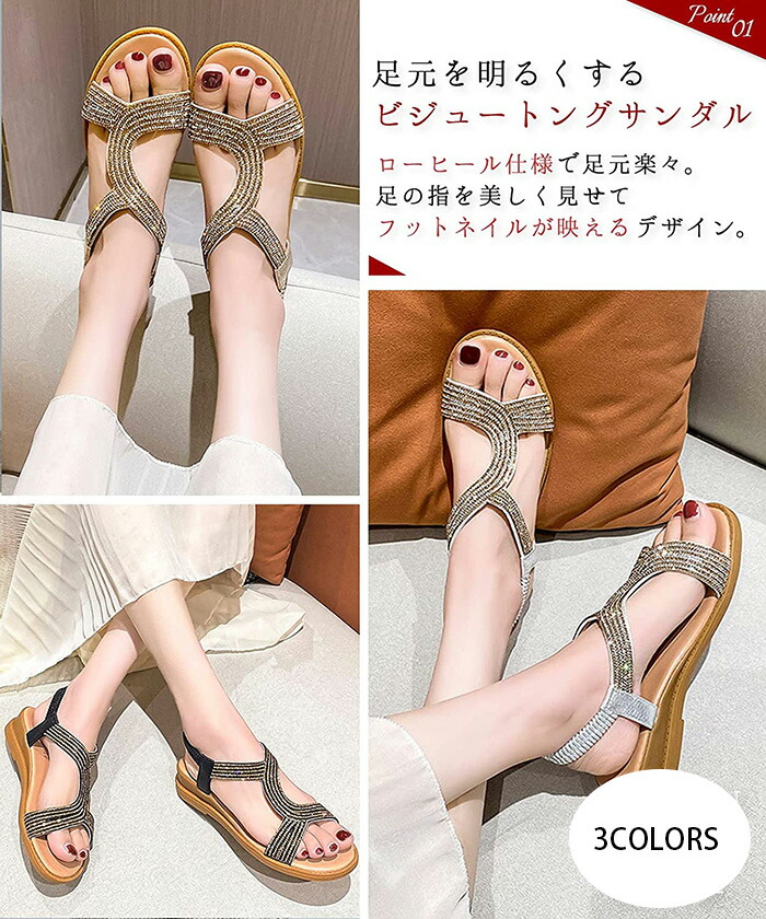 サンダル キラキラ ゴールド シルバー ラメ ラインストーン フラット トング ストラップ さんだる レディース 婦人靴 美脚 靴 履きやすい アウトドア 痛くない レディース 美脚