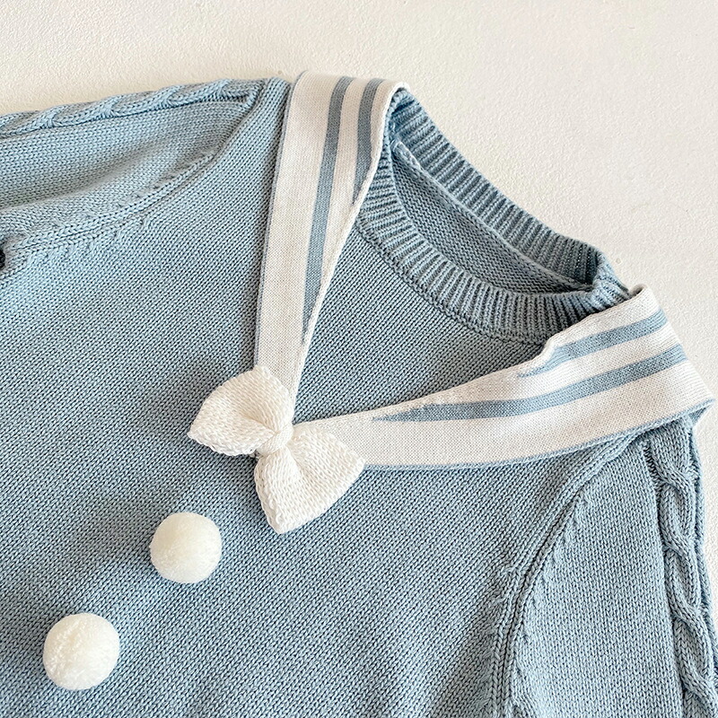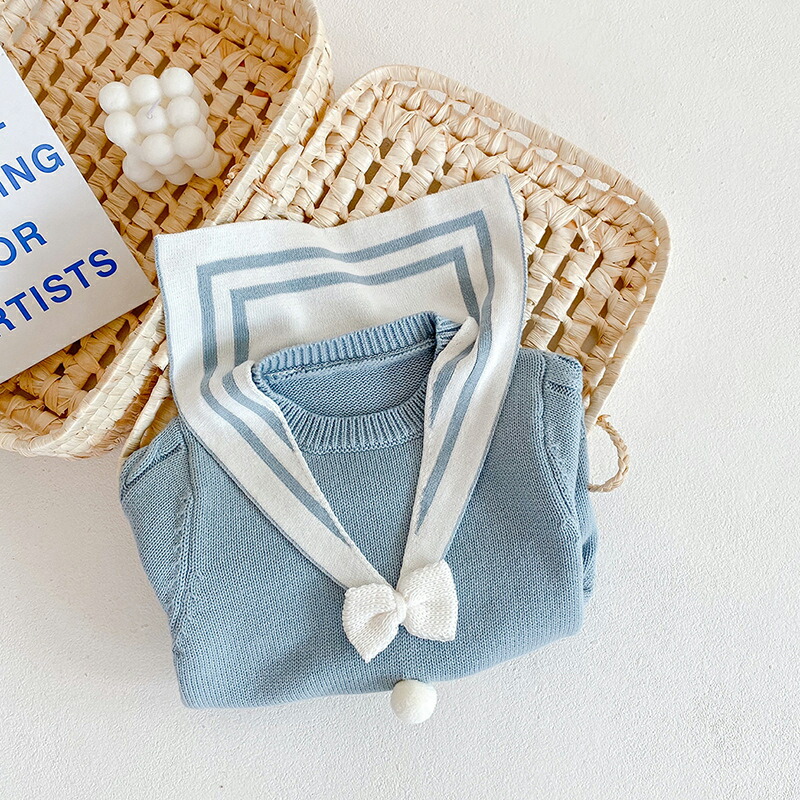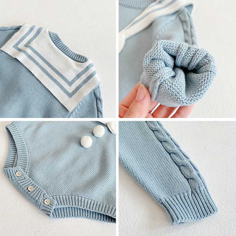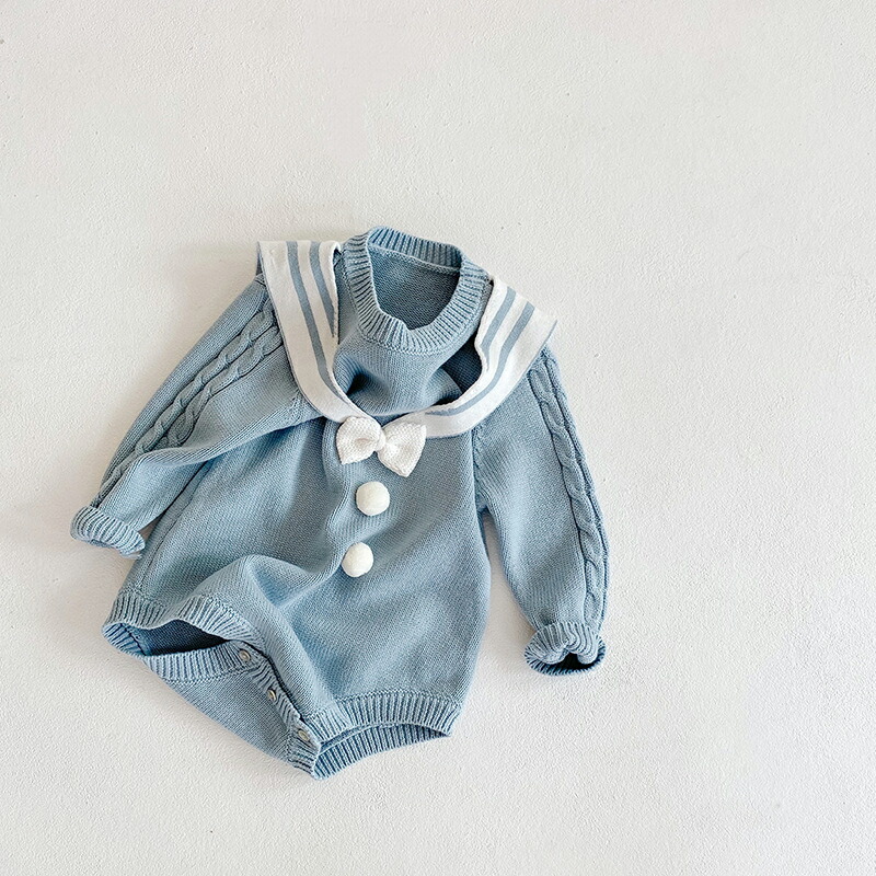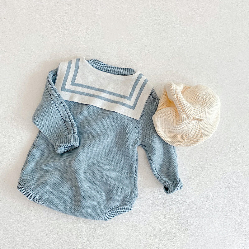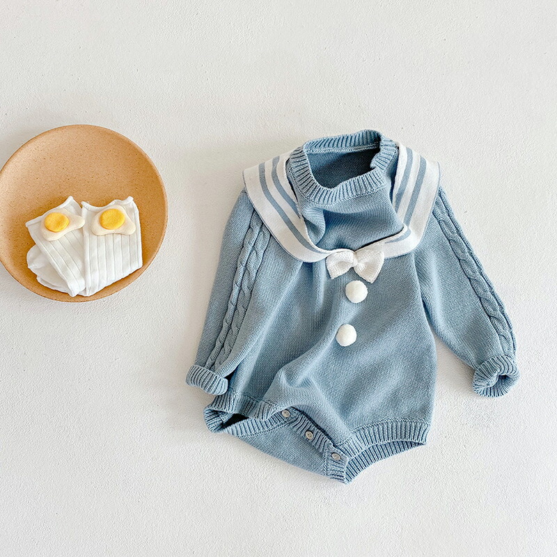 ベビー服 ベビー 女の子 ニットロンパース セーラー風 ベビーロンパース 新生児 ベビー 6ヶ月 おしゃれ 服 子供服 韓国 可愛い 春秋 冬 ナチュラル コットン 綿 オールインワン 無地 出産祝い プレゼント 60 70 80 90cm