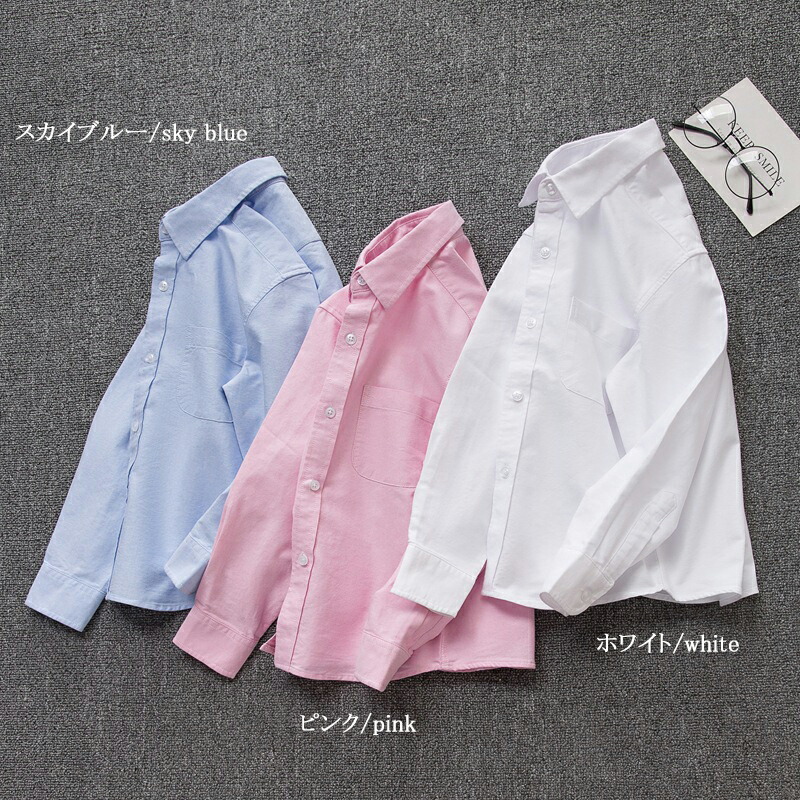キッズ フォーマル シャツ 長袖 子供 白シャツ 男の子 角襟 ジュニア 150 シャツ キッズ ブラウス フォーマル おしゃれ 白 夏 服 入学式 卒園式 入園式 子供服 トップス ブラウス 綿 コットン100% ホワイト スカイブルー ピンク