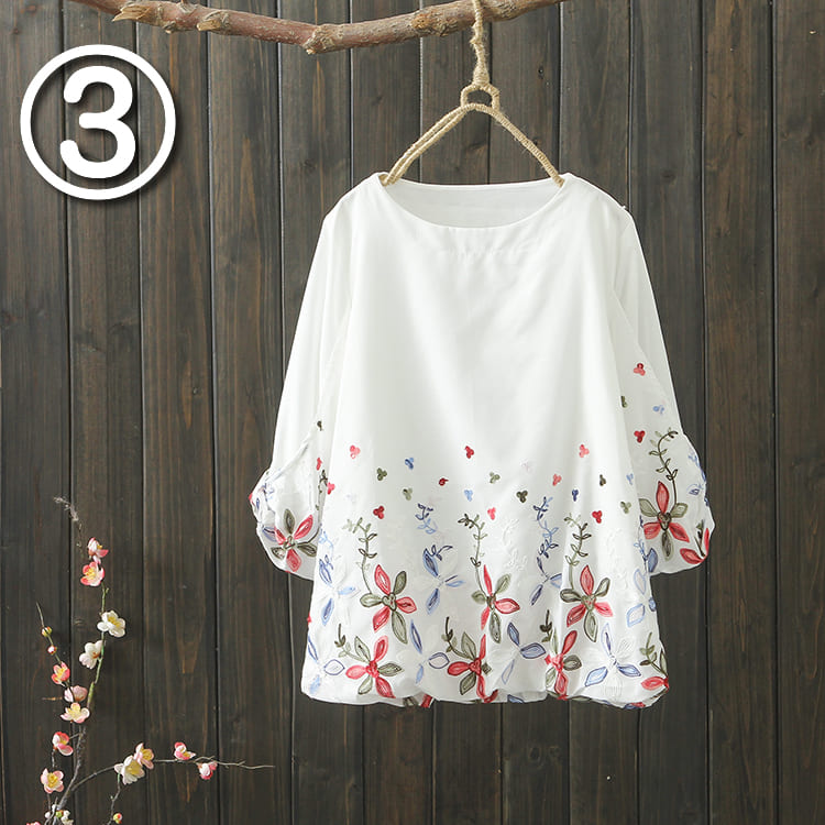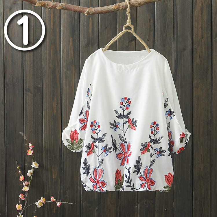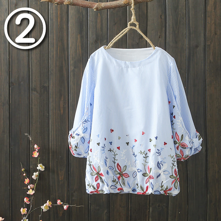 レディース 半袖 チュニック 5分袖 春 夏 秋 おしゃれ ゆったり ブラウス 40代 50代 60代 シニア トップス シャツ 体型カバー 大きいサイズ