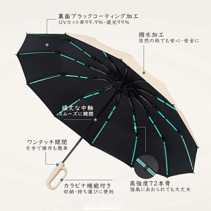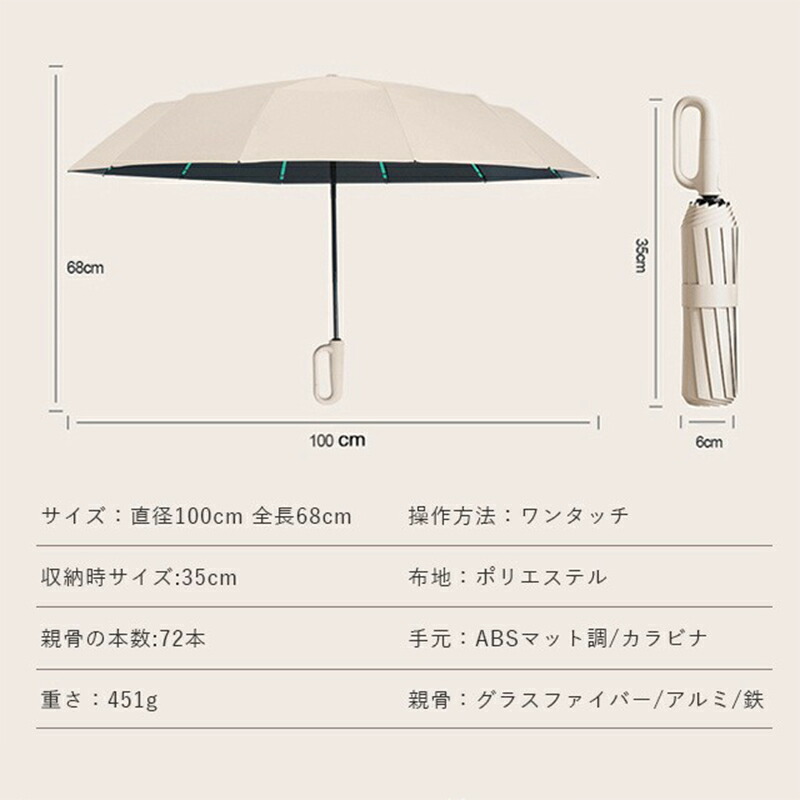 春新作 折りたたみ傘 折り畳み傘 カラビナ付き 72本骨 ワンタッチ 100cm 大きめ 全天候型 おりたたみ傘 UVカット 晴雨兼用