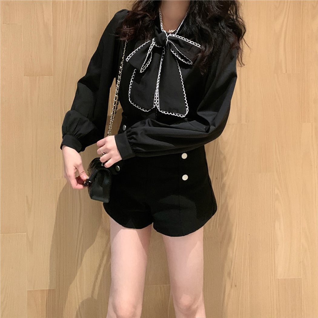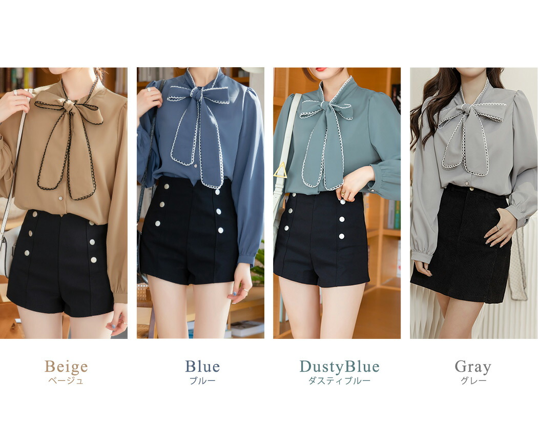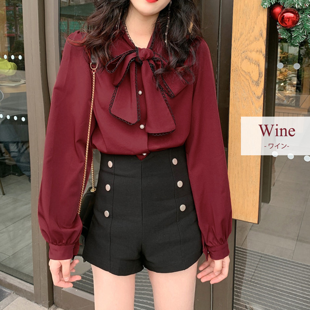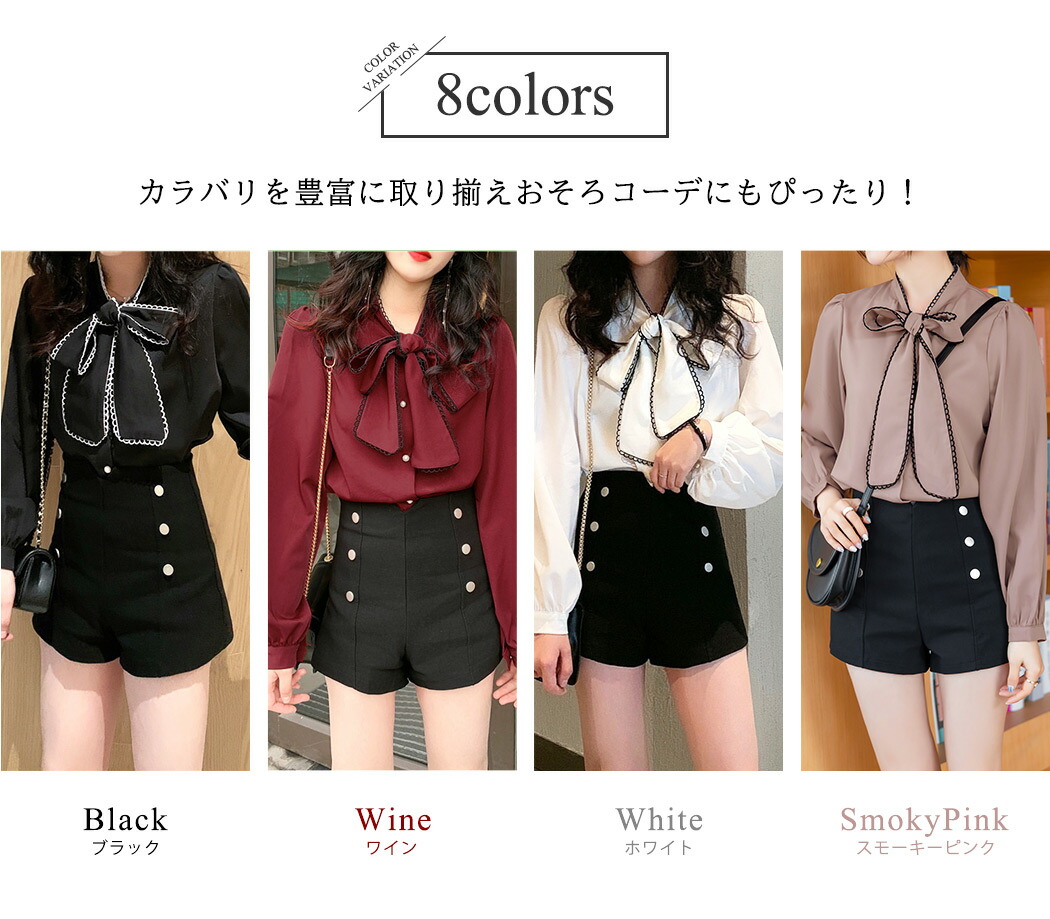ボウタイ リボン ブラウス レディース 大人可愛い 春 秋 長そで おしゃれ 上品 きれいめ ゆったり 薄手 無地 シンプル フォーマル フェミニン ガーリー 黒 バルーン袖 バック タック 通勤 通学 ビジネス スーツインナー デート