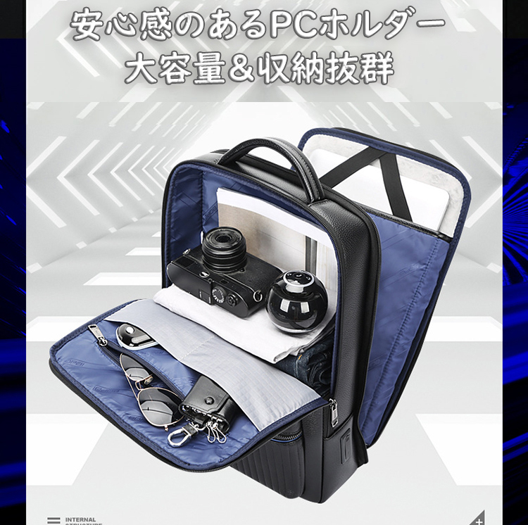 ビジネスリュック メンズ 本革 ビジネス 牛革 ビジネスバッグ 大容量 ボックス型 仕事 リュック バッグ 通勤 PC収納 USB搭載 出張 おしゃれ リュックサック ギフト ブランド 就職祝い 黒