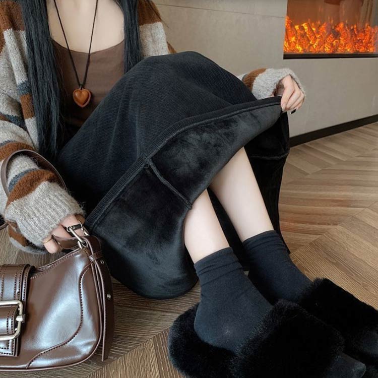 裏起毛 スカート ロング丈 裏ボア あ