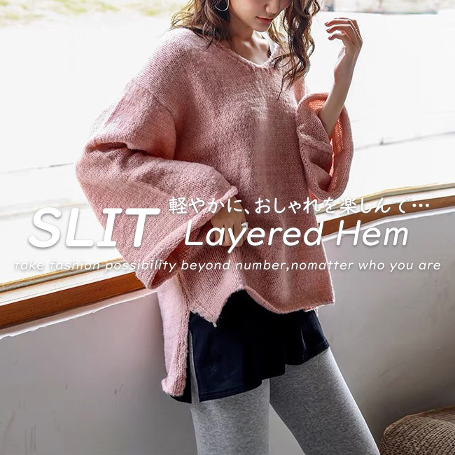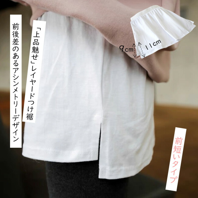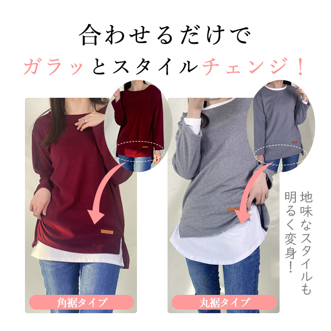 付け裾 スリットレイヤードTシャツ つけ裾 レイヤードトップス Tシャツ スリット スリット 重ね着風 裾 おしゃれ プラス