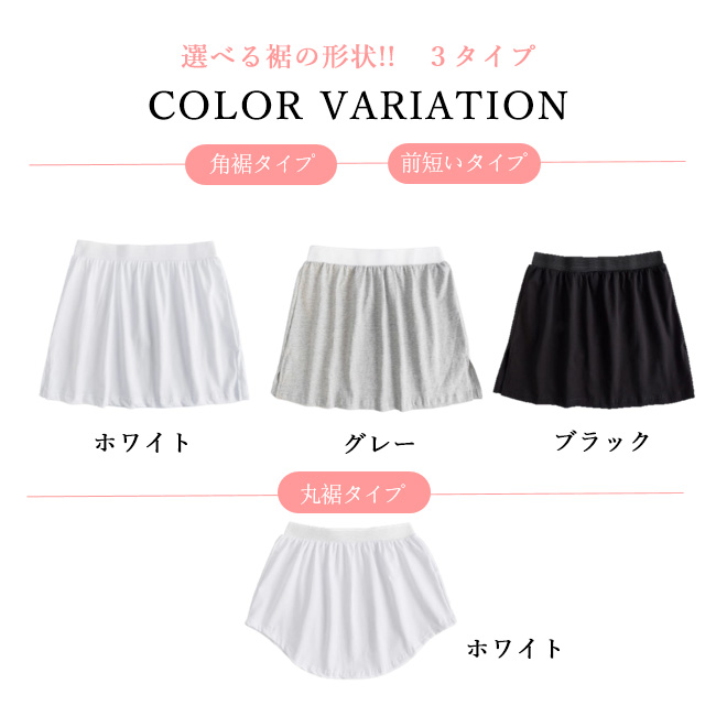角裾タイプ、前短いタイプ、丸裾タイプ