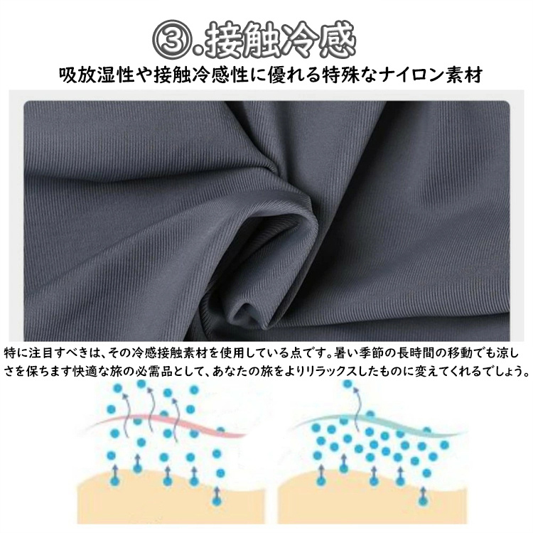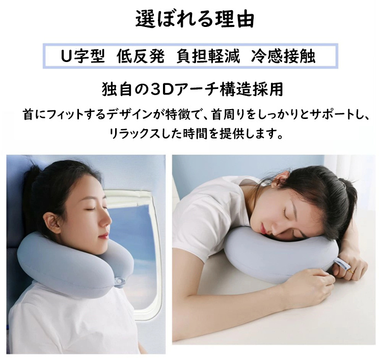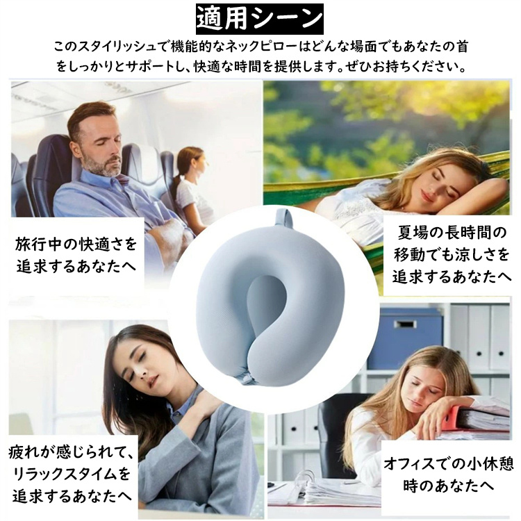 冷感接触のネックピローは、旅行中の飛行機やバス、車などでの睡眠時に、首を支えて快適な姿勢を保つことができます。長時間の移動中に疲れた首をサポートすることで、疲労感を軽減することができます。