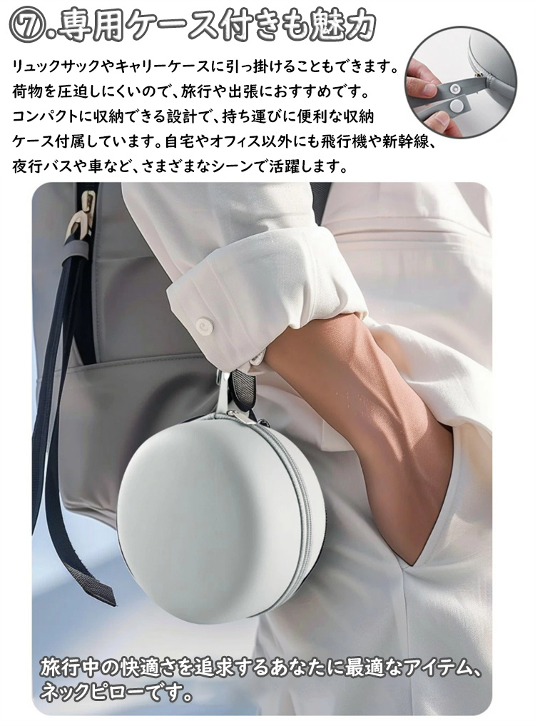 以上のように、ネックピローは旅行や日常生活での快適さやリラックス効果をもたらすだけでなく、安定性が高く、持ち運びが簡単で洗濯もしやすいという便利な機能があります。