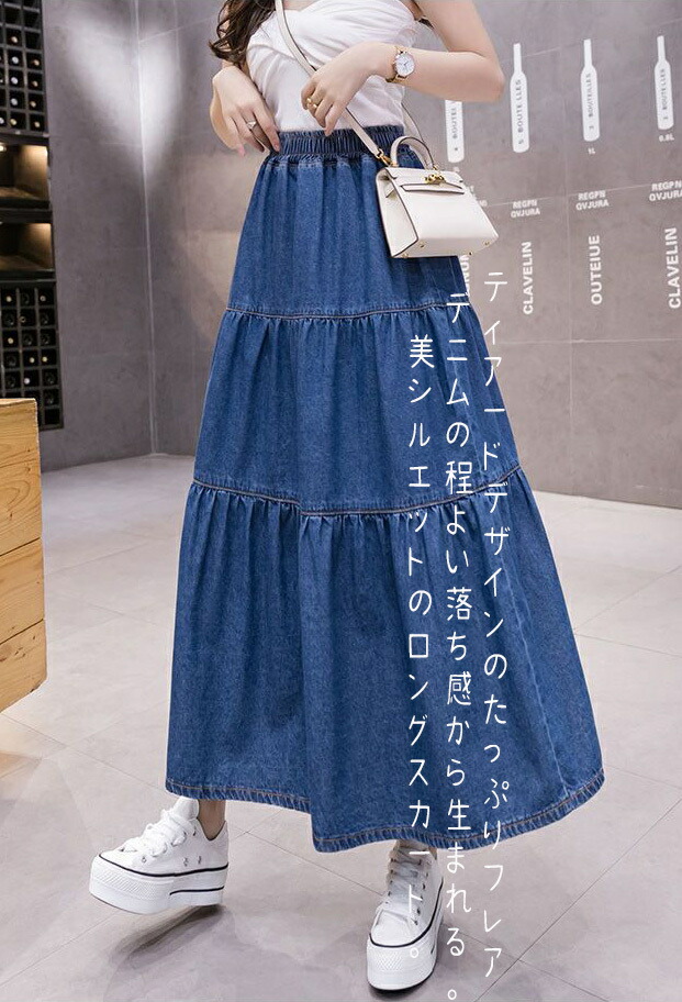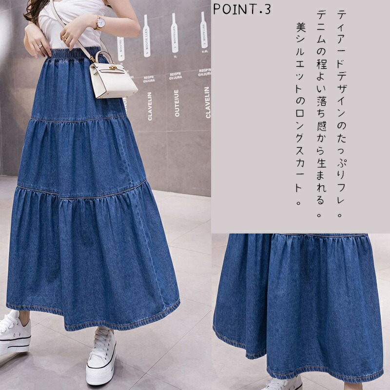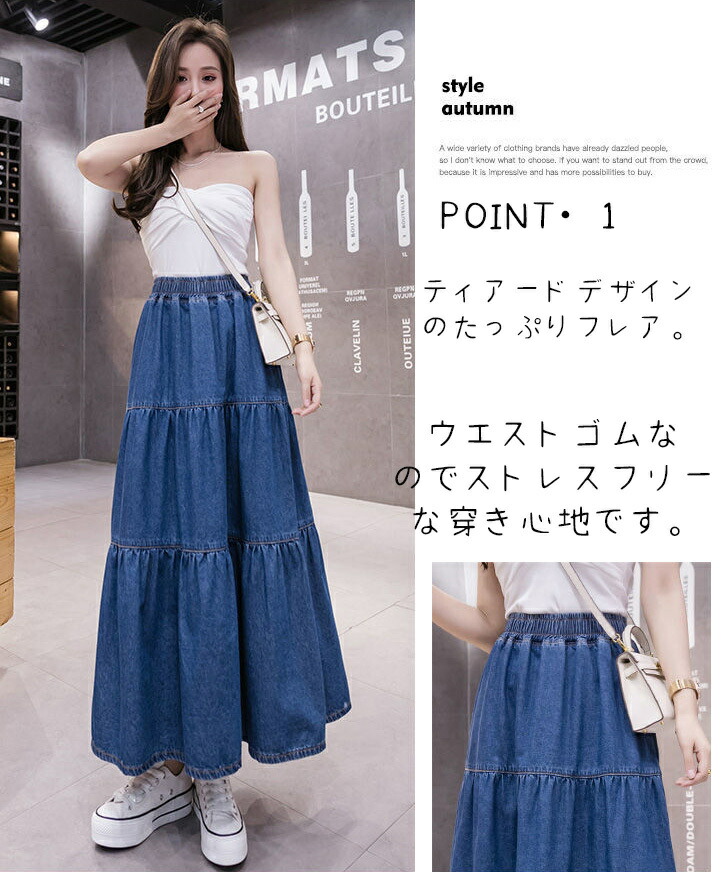 デニムスカート デニム ロングスカート マキシスカート フレアスカート レディース フレア 大人 ハイウエスト 無地 可愛い 春 夏 秋 S ~ 5XL