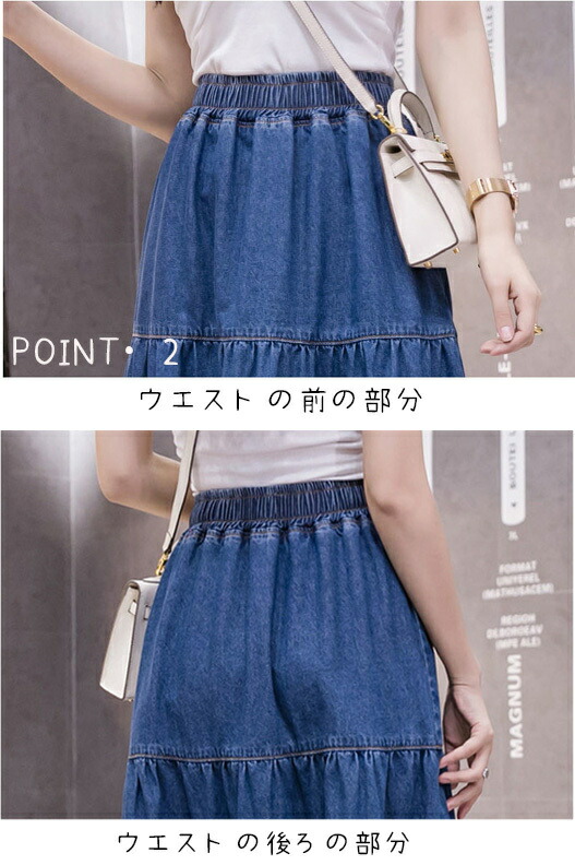 ポリエステル30%素材の特徴 フレアマキシスカート S-5XL デニム レディースファッション ボトムス スカート デニムスカート ロング丈 マキシ丈 洗える ゆったり レディース お出かけ おうちコーデ キレイめ 春夏秋冬