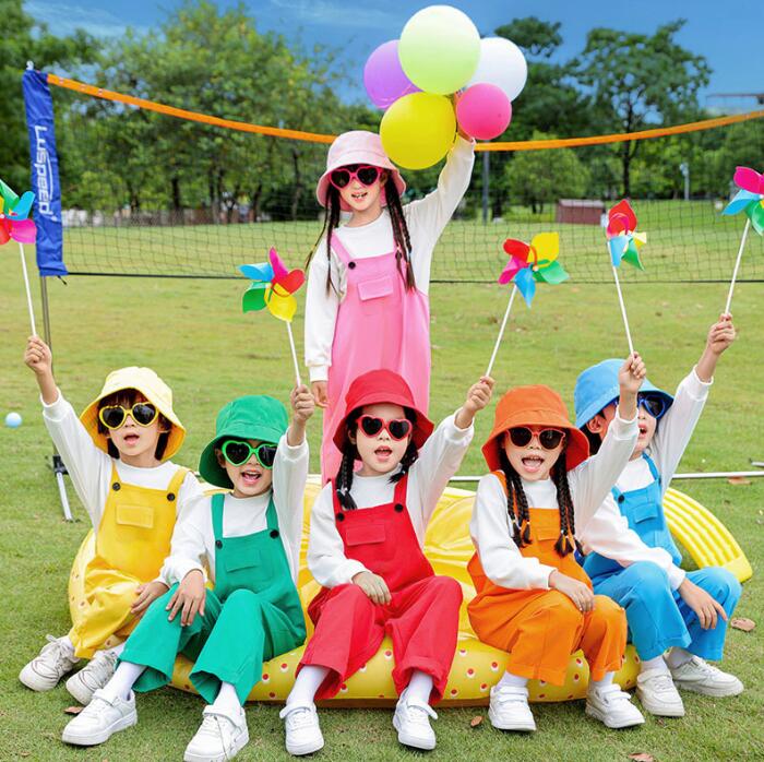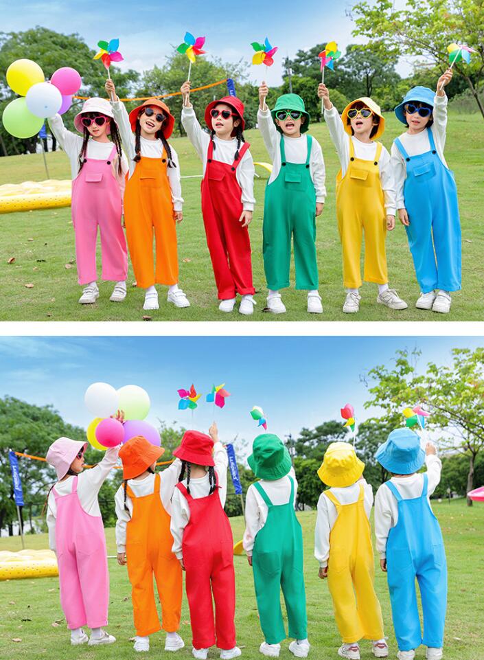 子供ダンス衣装サロペットセットカラフルオールインワンパーカー+ロングパンツ2点セットアップ女の子 男の子ジャズヒップホップダンス服棉100%普段着チアリーディング