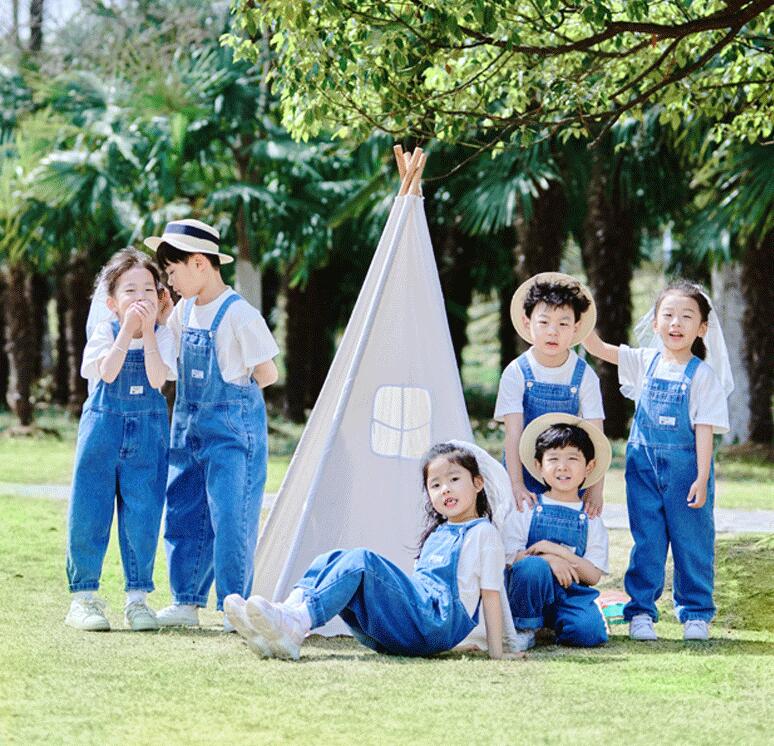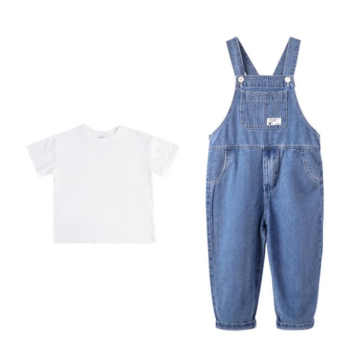子供ダンス衣装デニムサロペットセット女の子 男の子ジャズヒップホップダンス服普段着運動会ジーンズチアガールチア舞台演出服春夏秋キッズhiphopjazz舞台ダンス衣装