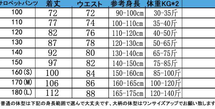 普通の体型は下記の身長範囲で選んで大丈夫です、大柄の体型はワンサイズアップでお願い致します