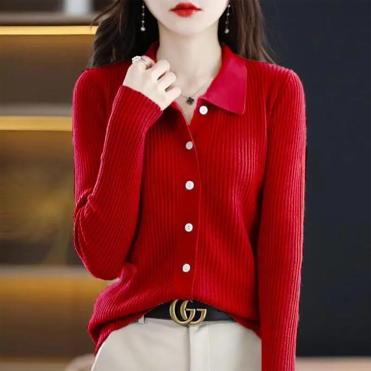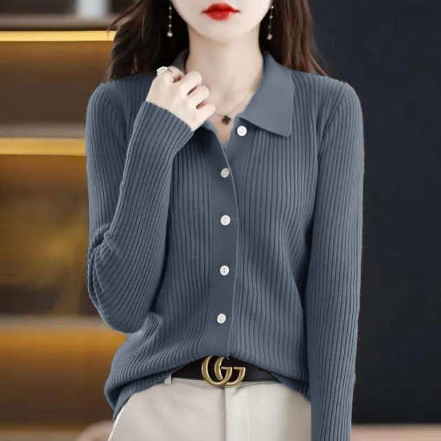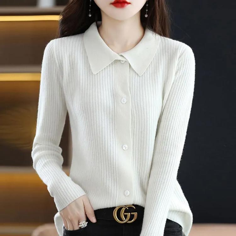 一気にこなれ感が出る襟付きニットカーディガン。