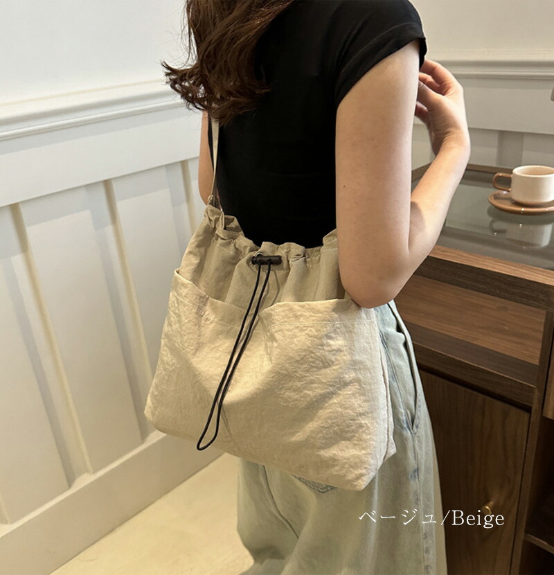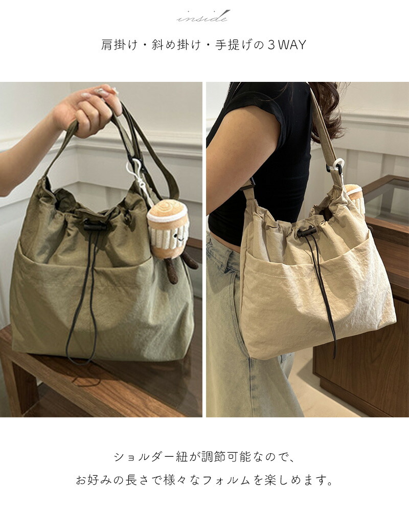 DATE商品名 ショルダーバッグ トートバッグ レディース ナイロン 男女兼用 カジュアル 巾着 3WAY 撥水 斜め掛け ミニショルダー 肩掛け バッグ 鞄 ショルダートート 薄型 エコバッグ サブバッグ 軽い 軽量 ユニセックス シンプル メンズ 無地