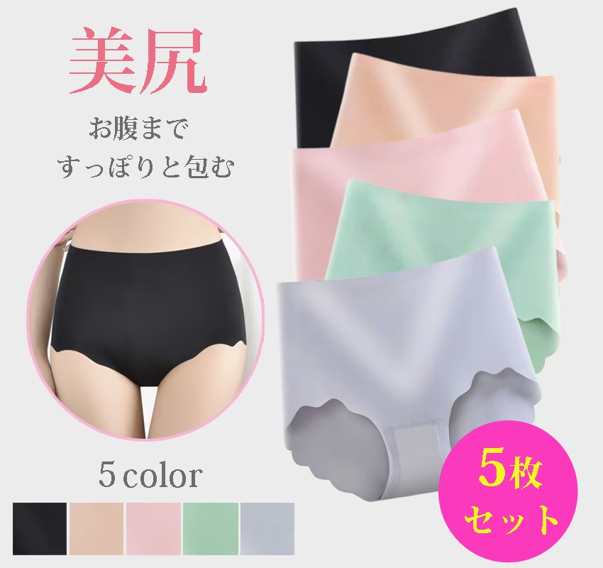 ハイウエストシームレス5枚セット!! 無地 深ばき 深履き セット 女性 下着 フィット感 大きいサイズ ヒップアップ お腹 引き締め 通気 無縫製 シームレス 大人気 【高品質の製品】