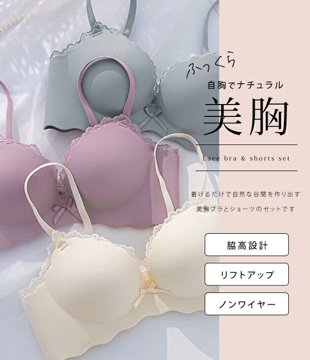 商品説明 さりげないレースのアクセントが可愛い脇高モールドブラ&ショーツセット♪