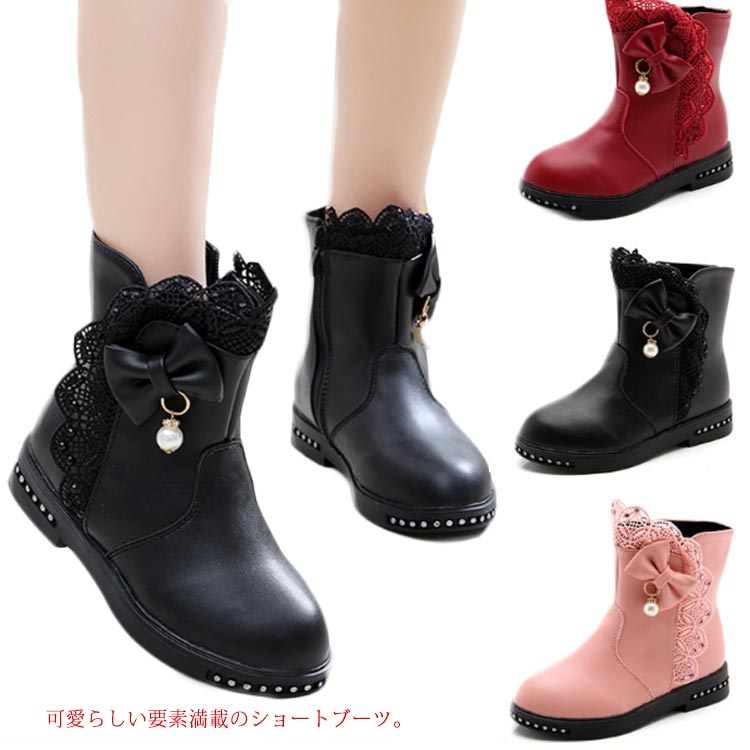 レース スタッズ リボン あったか パール 防寒 可愛らしいショートブーツキッズ ベビー マタニティ キッズファッション 靴 ブーツ