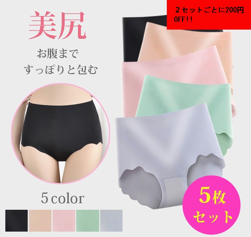 【今だけ限定!!2セットごとに200円OFF!!】【5枚セット】ハイウエストショーツ 5枚セット ハイウエスト シームレス 深ばき 深履き セット 無地 下着 フィット感 ヒップアップ