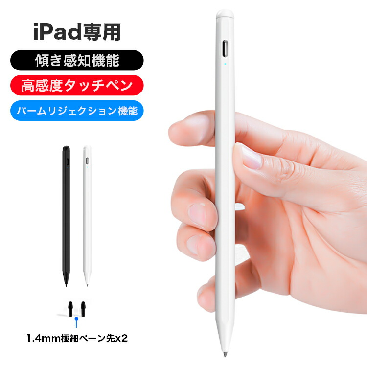 iPad タッチペン 替え芯2本付き 極細 ペンシル スタイラスペン ペン先1.4mm極細 超高感度 超軽量 充電式 iPad Pro Air Mini 10.2 11 12.9 インチ 10.5 7.9 9.7 第7世代 第6世代 第5世代 第4世代 第3世代