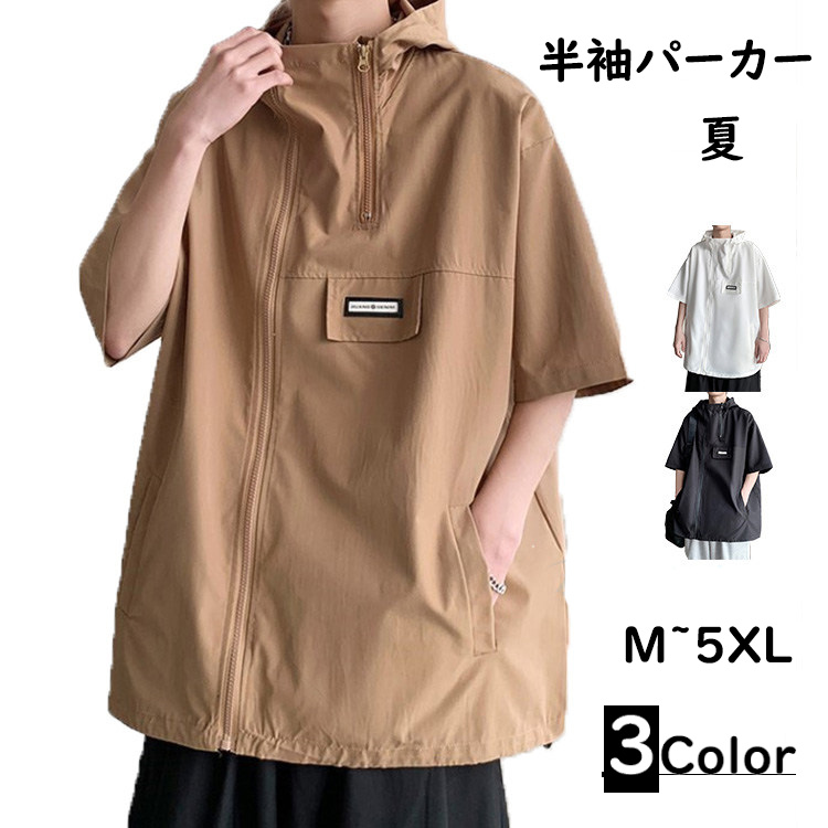 半袖パーカー メンズ ジップアップパーカー カット ポケット付き 速乾 ビッグパーカーメンズファッション トップス パーカー