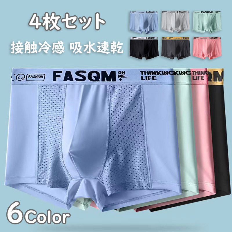 ボクサーパンツ 4枚セット 夏用 メンズ メッシュ メンズ パンツ下着 接触冷感 吸水速乾 ボクサーブリーフ インナー ショーツ アンダーウェア 抑菌 さらさら ヒンヤリ感 L-6XL 大きいサイズ 薄手タイプ